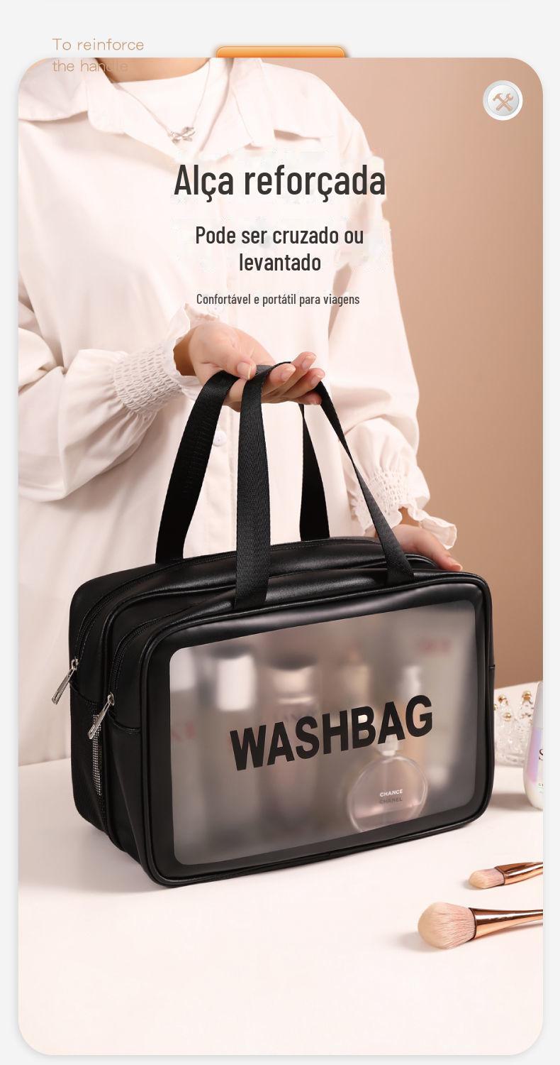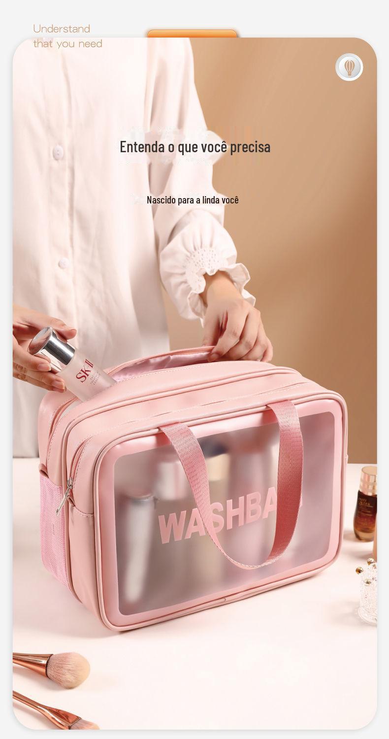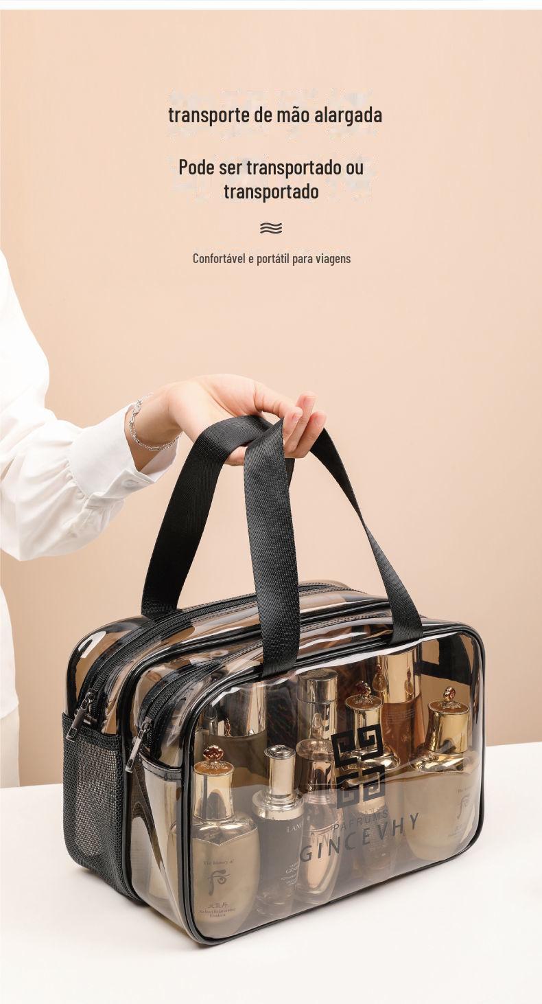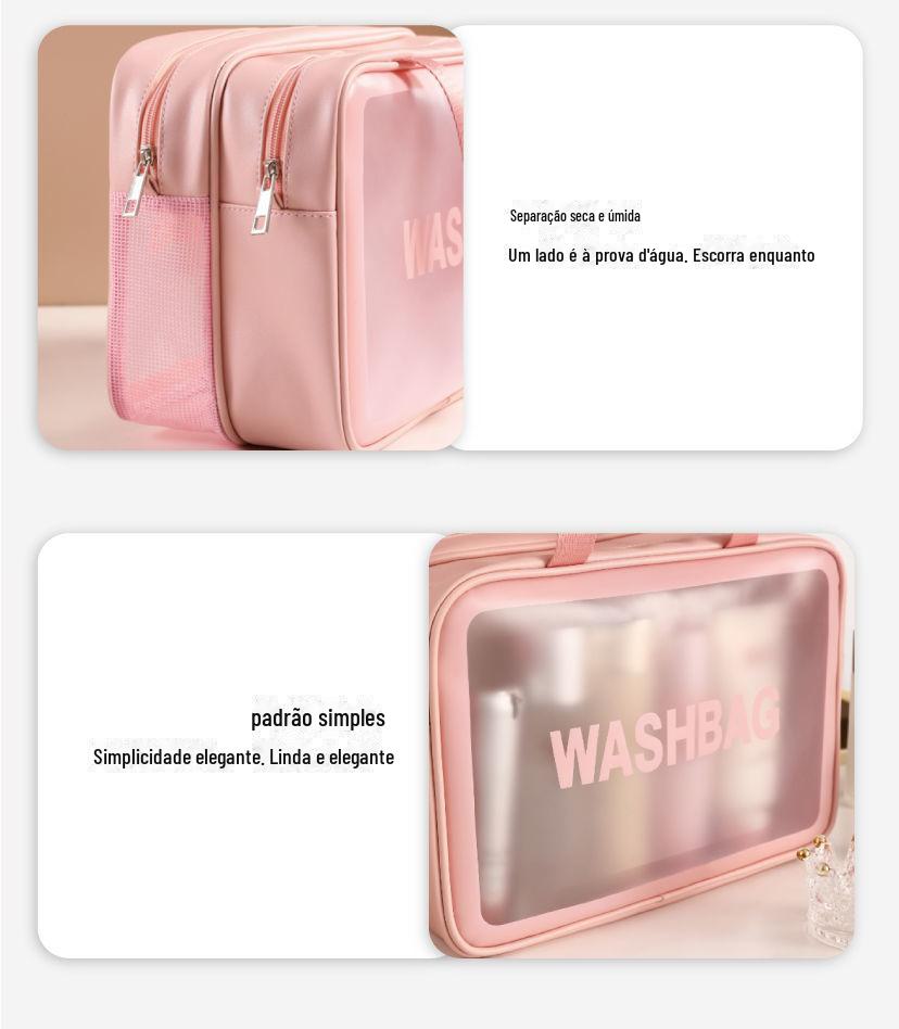 Bolsa cosmética de separação seca e úmida de camada dupla PU+PVC: