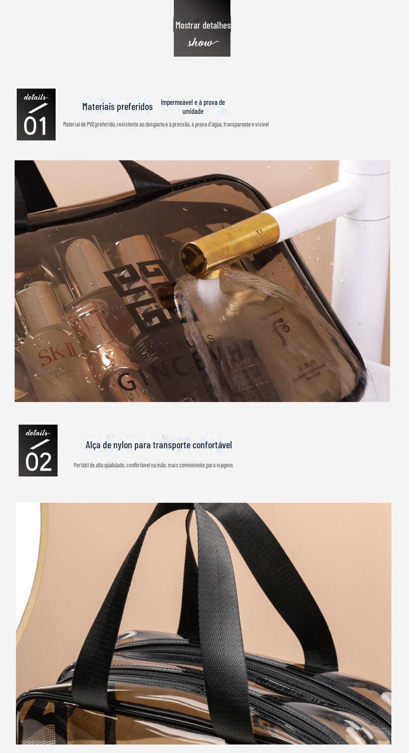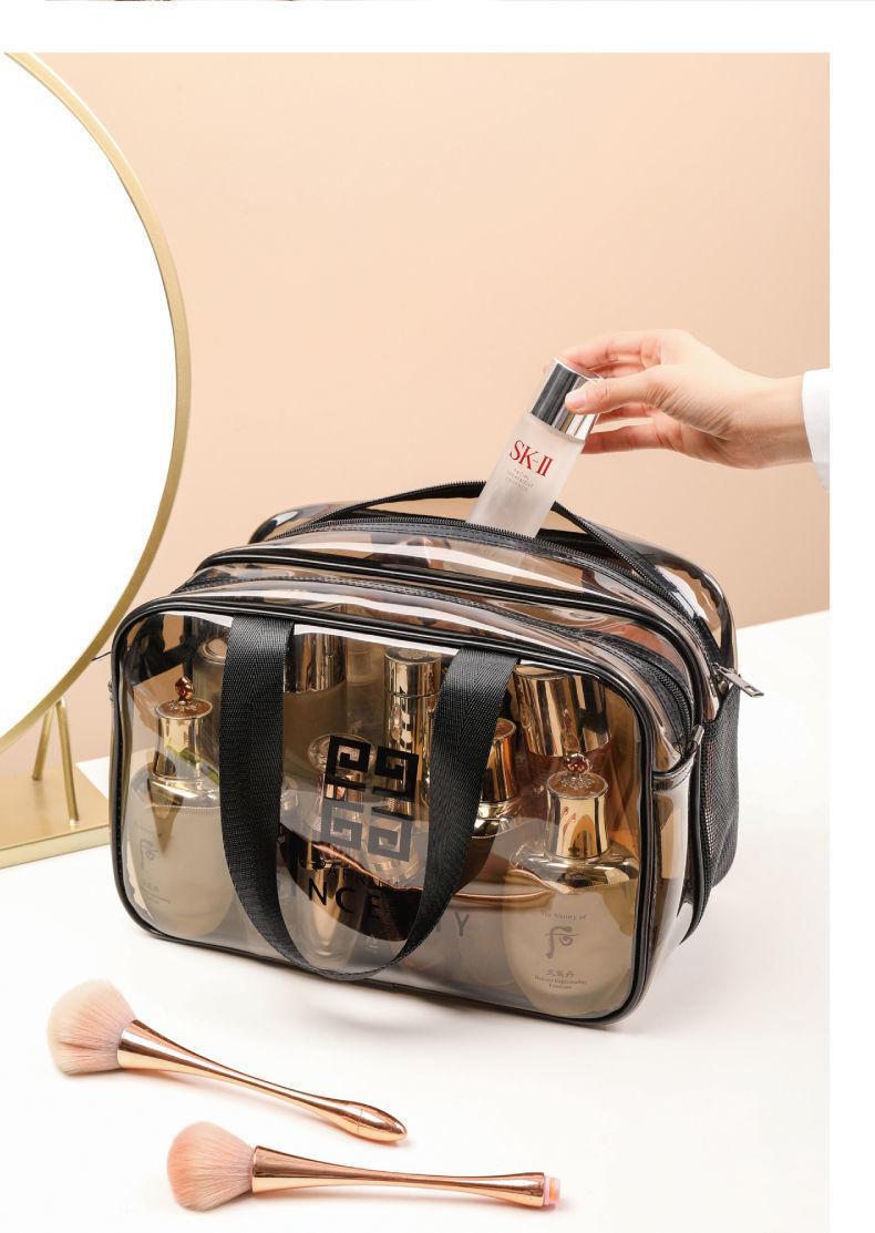 Gray medium double-layer PVC cosmetic bag, Gray large double-layer PVC cosmetic bag, Transparent medium double...