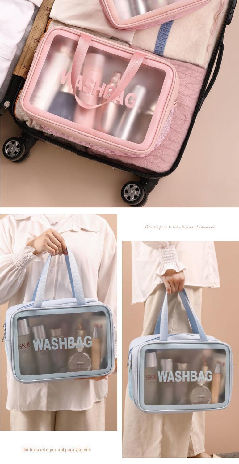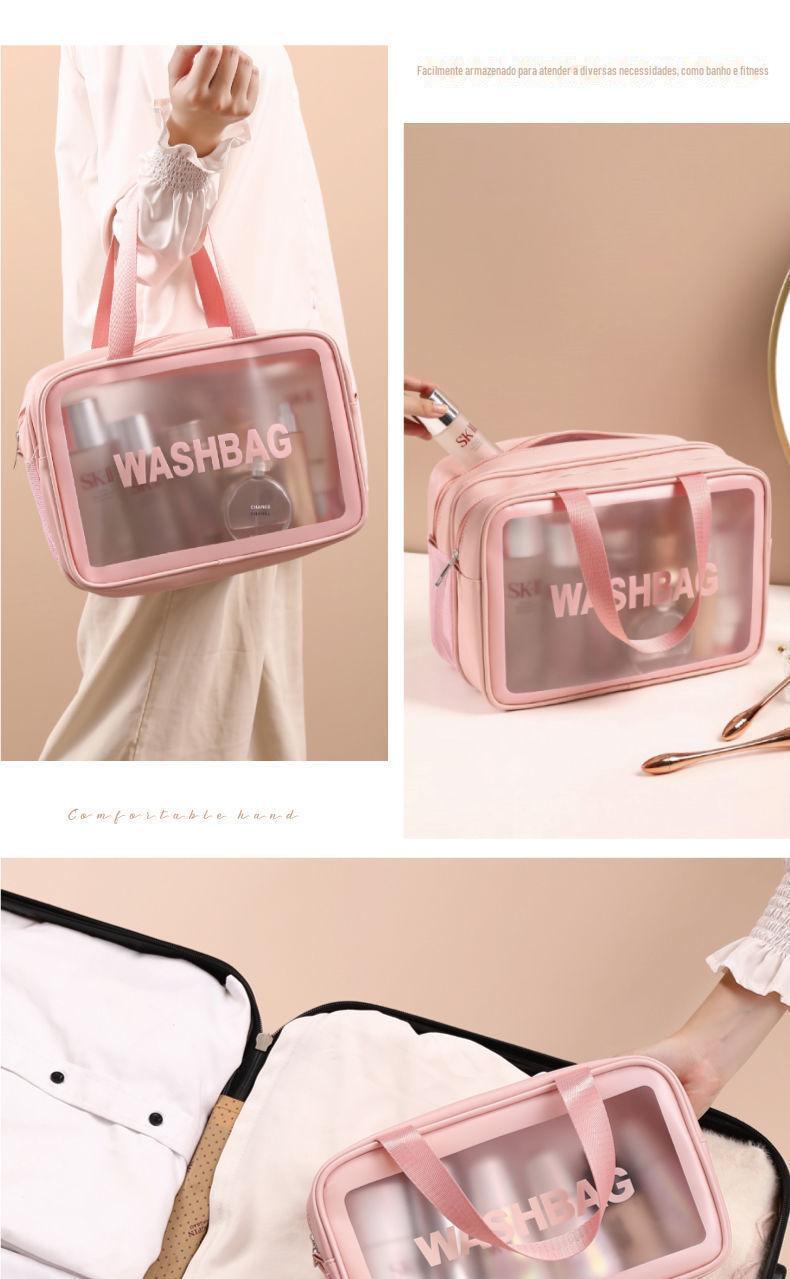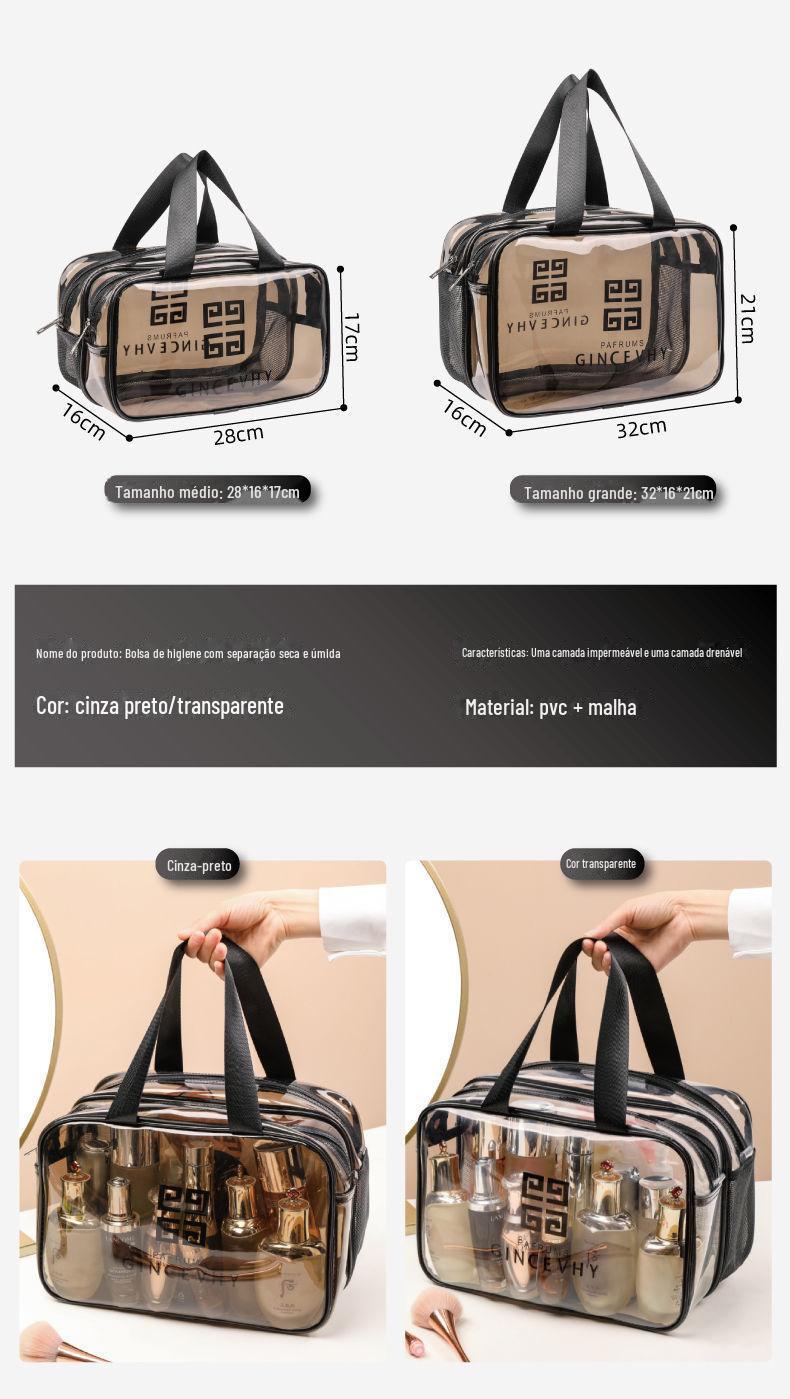 Separação úmida e seca PVC saco cosmético saco de armazenamento de grande capacidade bolsa de mão transparente das mulheres viagem saco de lavagem impermeável atacado