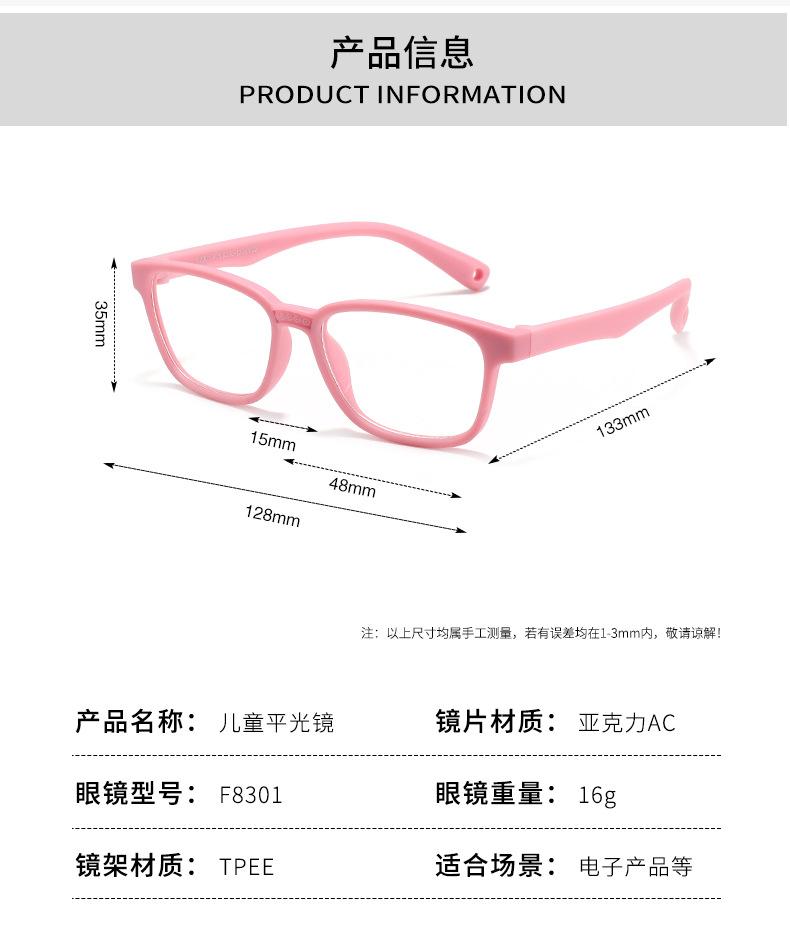 2025 Nova Armação de Óculos Infantil Multicolorida Opcional de Silicone Óculos de Sol para Assistir TV Óculos Planos P8301