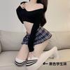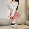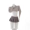 Noite Menglian Sexy Underwear Uniforme Tentador Estudantes jk Xadrez Minissaia Decote Baixo Conjunto de Suéter Saia Plissada