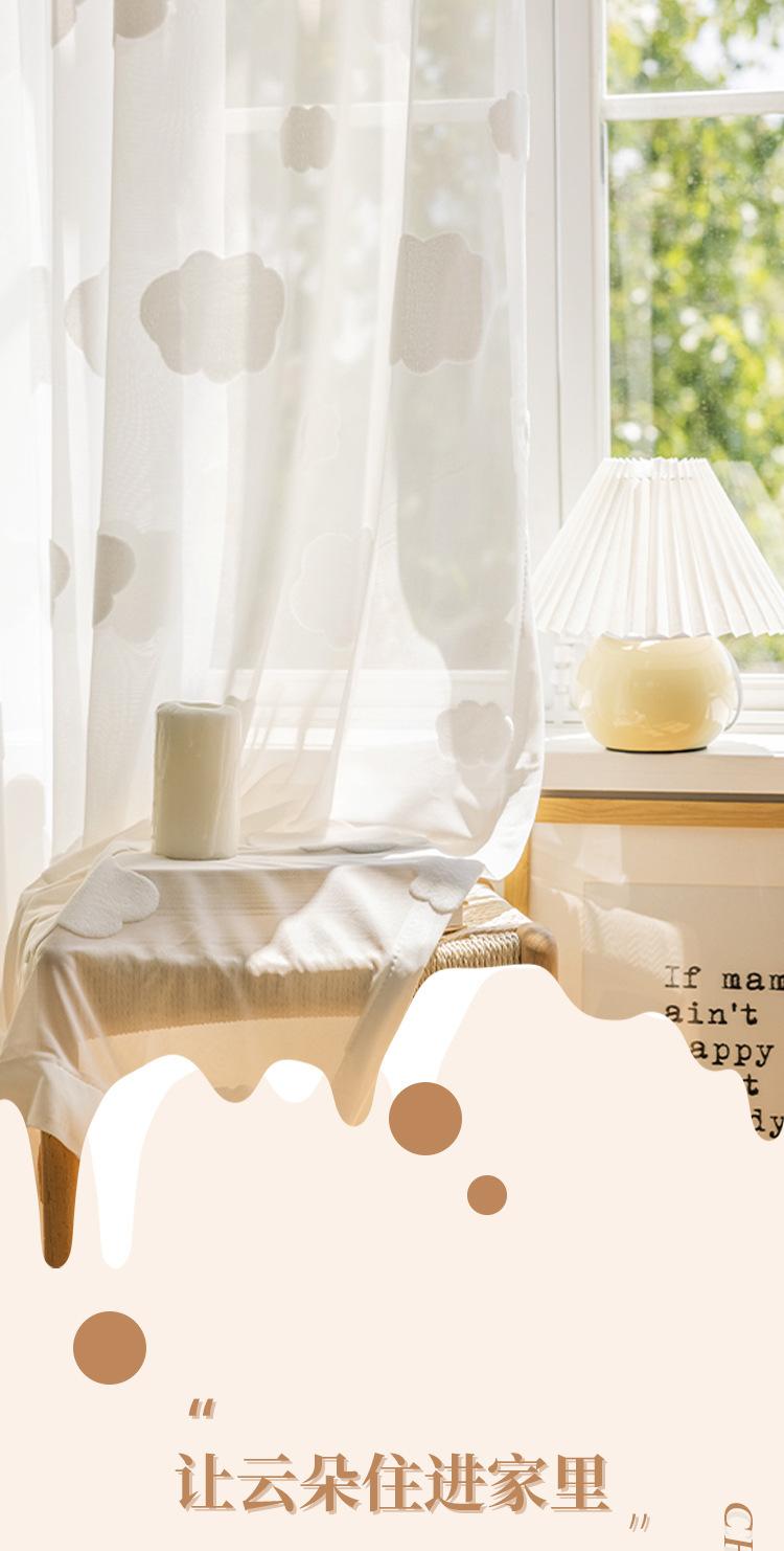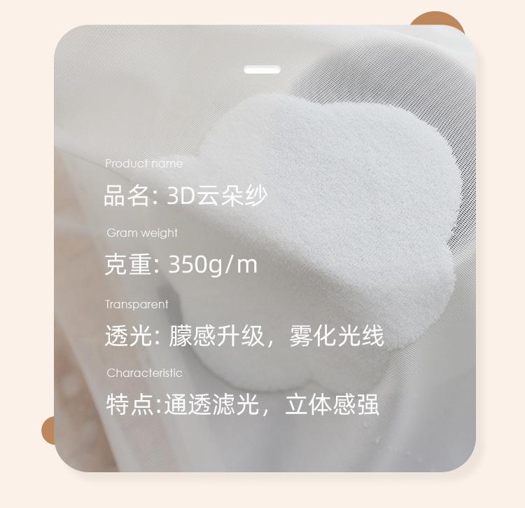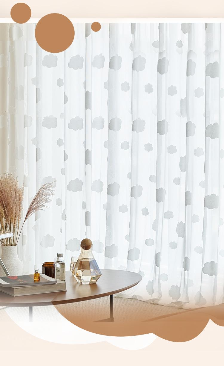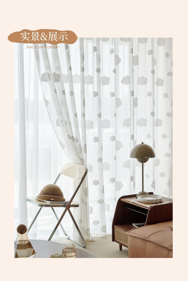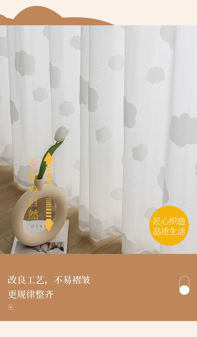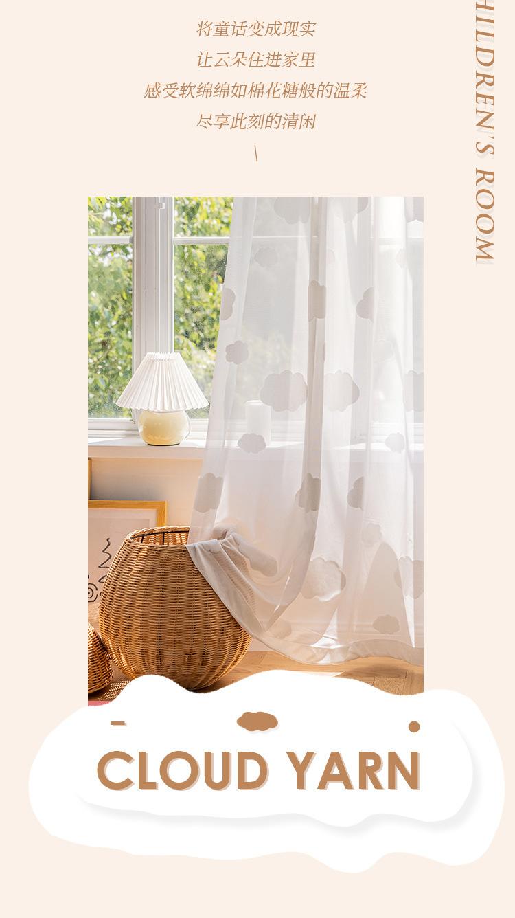 Tela de janela tridimensional simples japonesa para crianças, tela de interesse em nuvem, quarto, sala de estar, luz de interesse infantil, tela transparente porosa, cortina branca