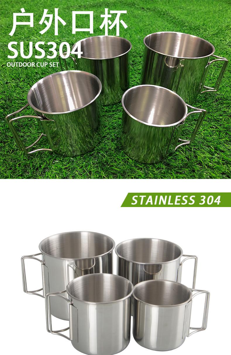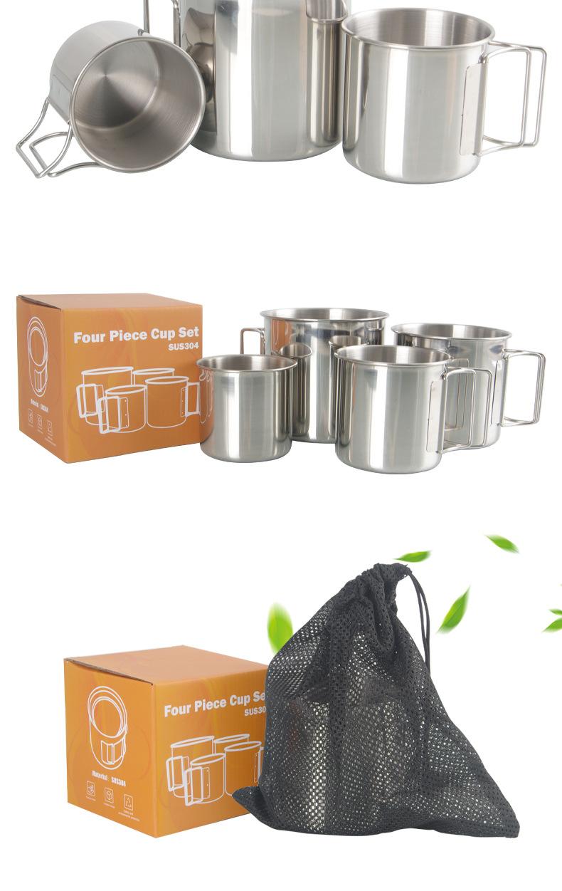 Copo de aço inoxidável ao ar livre camping portátil copo conjunto escalada camping tableware multi-funcional 4 peças copo de água