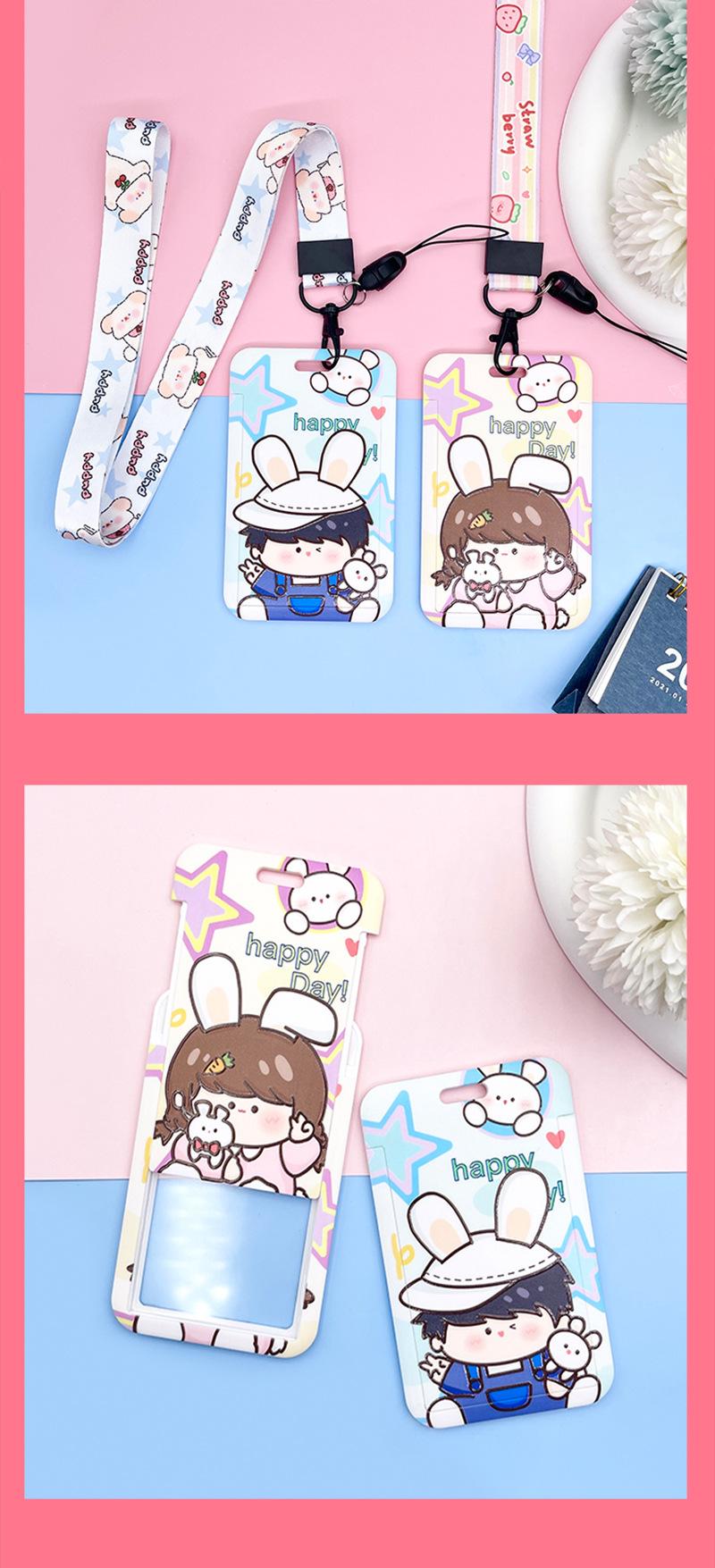 Bunny girl + striped strawberry long lanyard, Rabbit Boy + star dog long lanyard, Bunny girl + purple ring han...