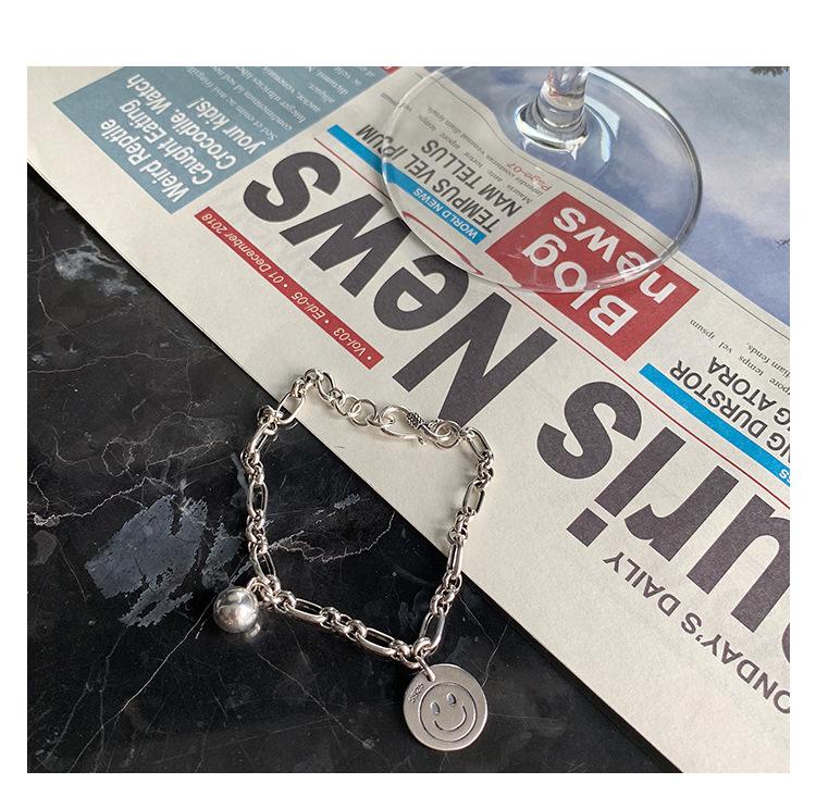 Compre 925 prata esterlina estilo coreano high-end smiley pulseira feminina ins nicho design estudante simples frio estilo retro elegante no atacado no Joom.pro