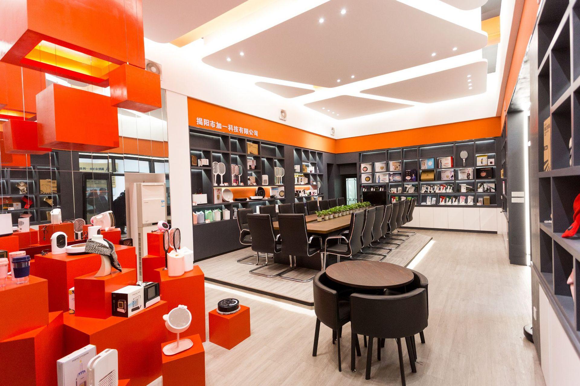 Cena real do salão de exposições da empresa + departamento de comércio eletrônico