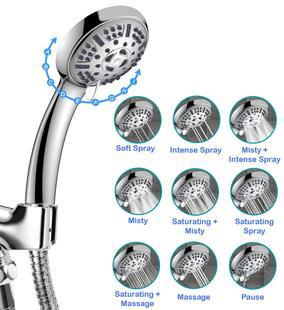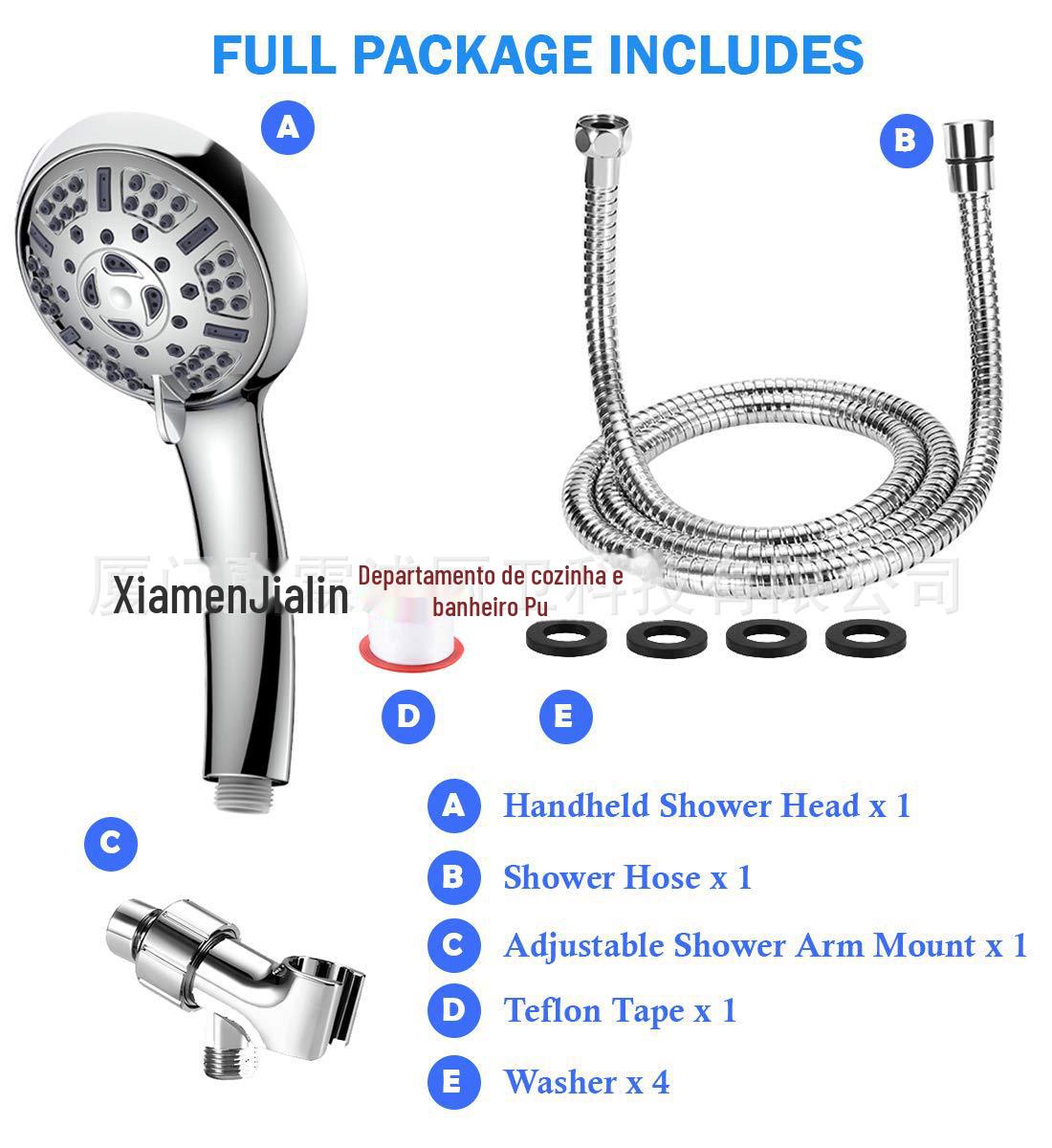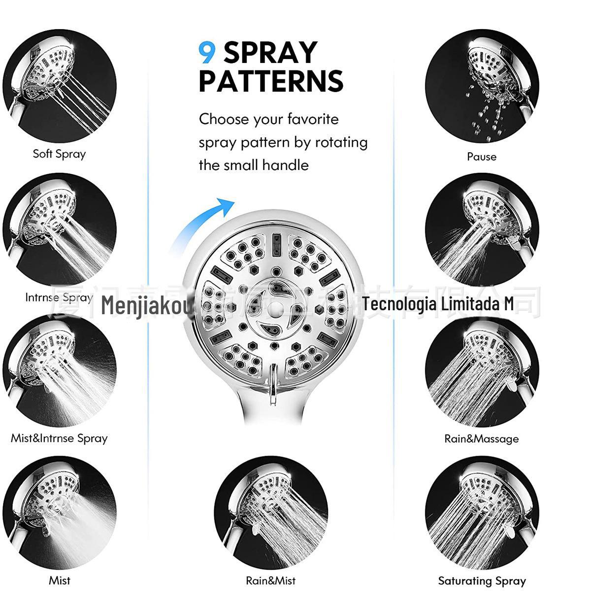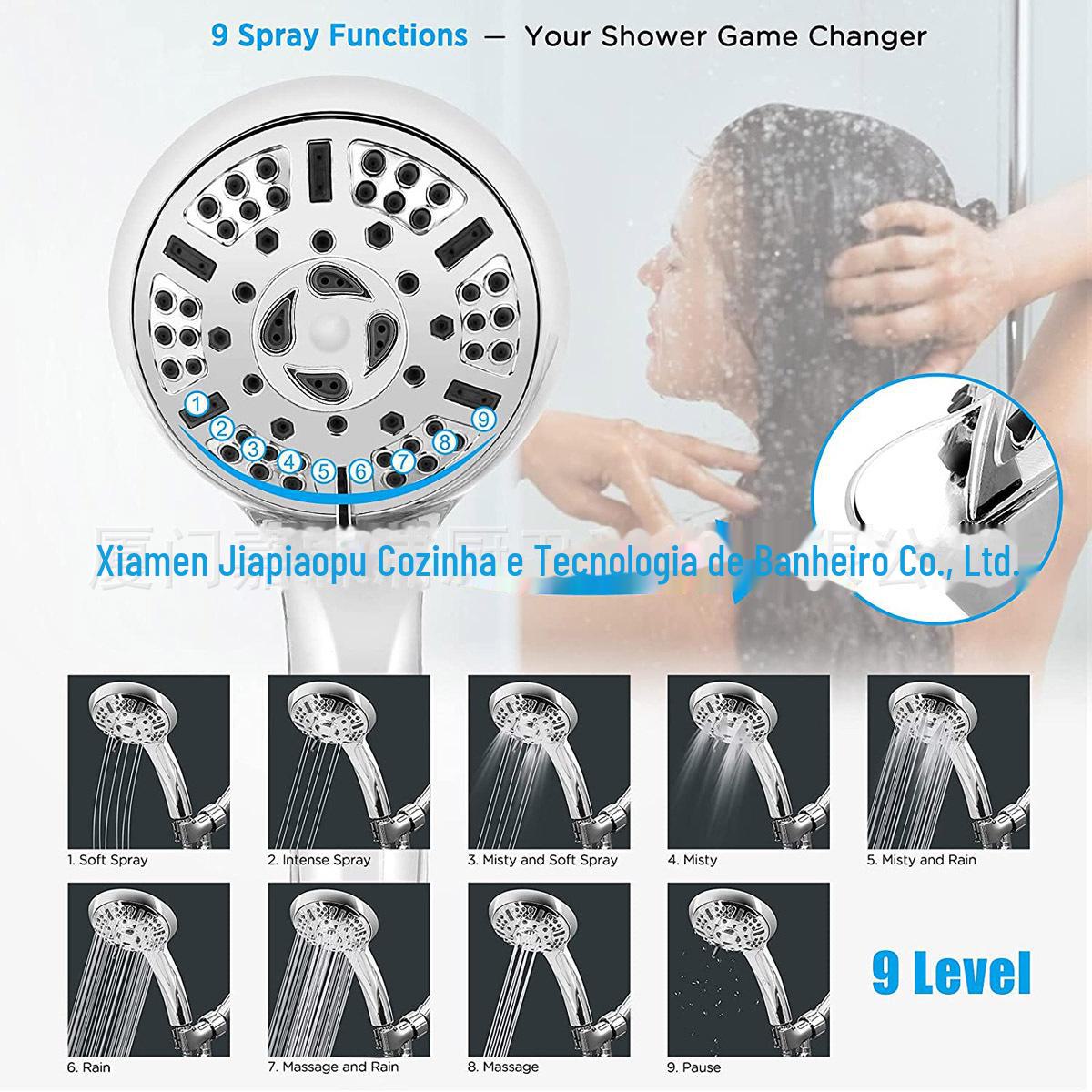 Chuveiro com 9 funções+Conjunto de mangueira de aço inoxidável de 1,5 m (universal)
