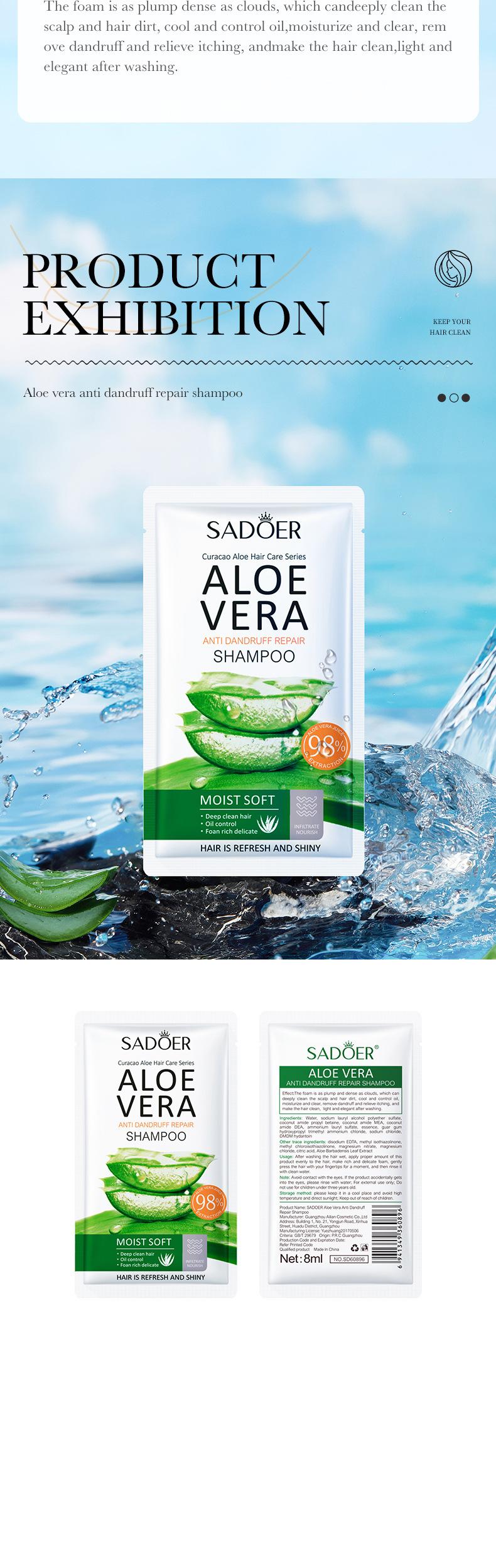 Shampoo Anticaspa Sadoer Aloe Vera para Exportação Transfronteiriça Melhora a Qualidade e Maciez do Cabelo Shampoo Natural
