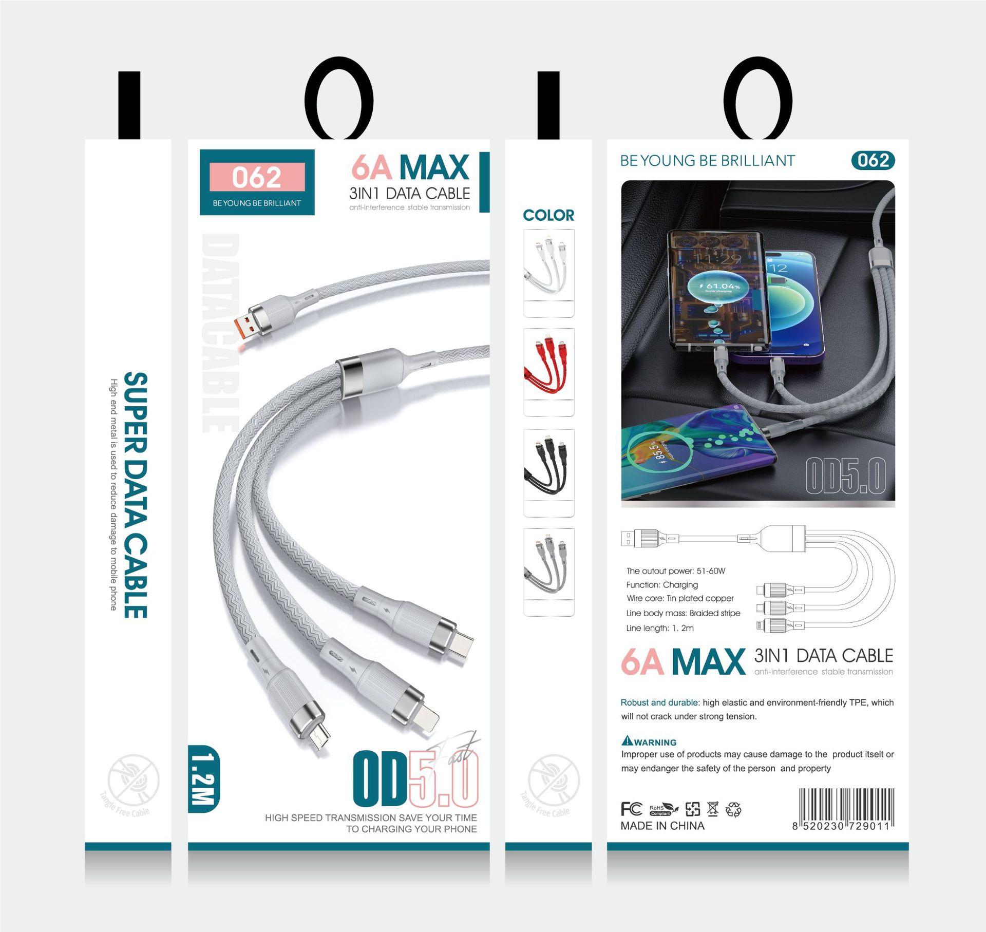 Nome do produto: padrão de flash grosso de 100 W cabo de carregamento super rápido de um a três