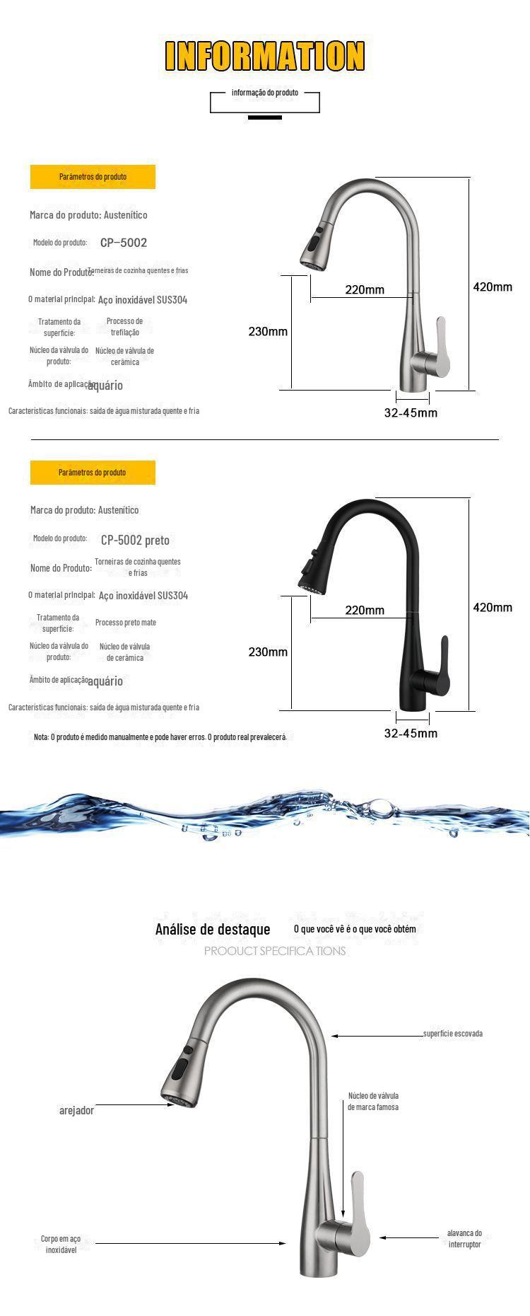 Wire drawing faucet (including water pipe), Black pull-out faucet (including water pipe), PVD gun ash extracti...