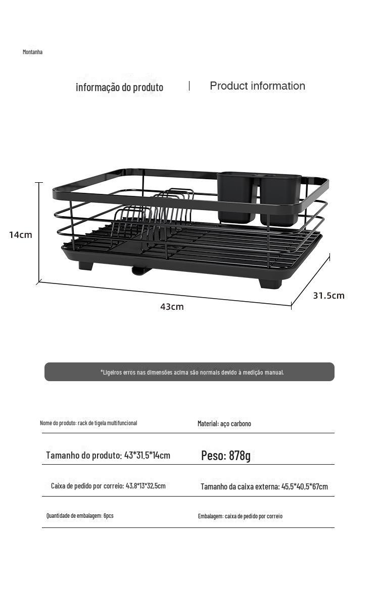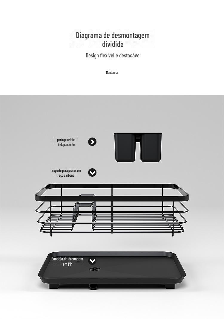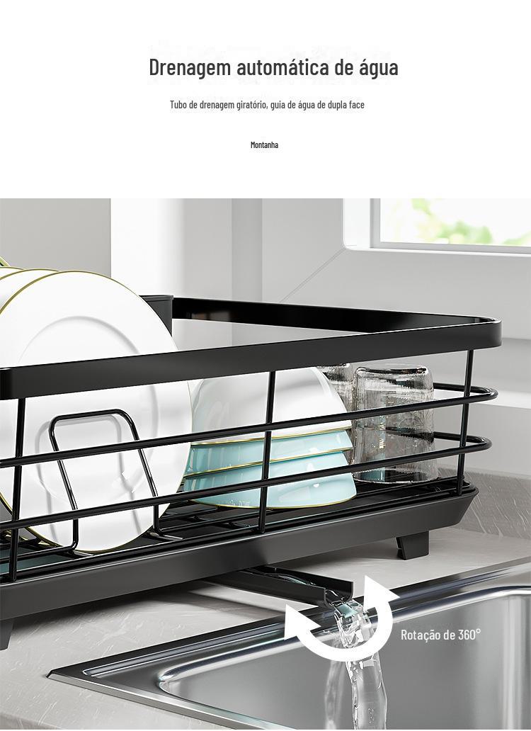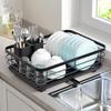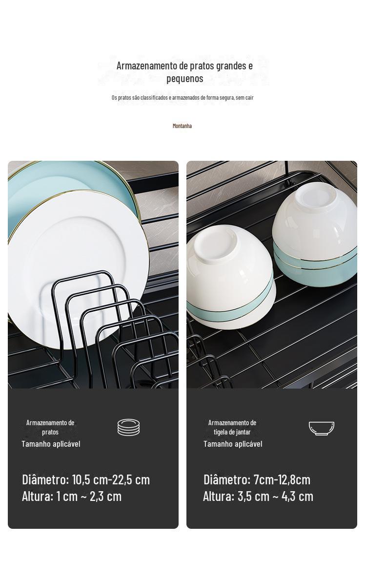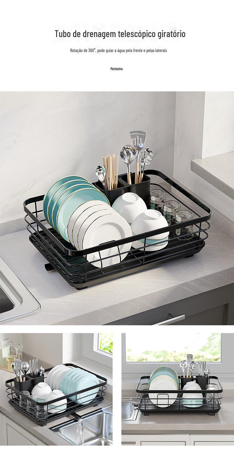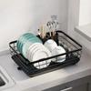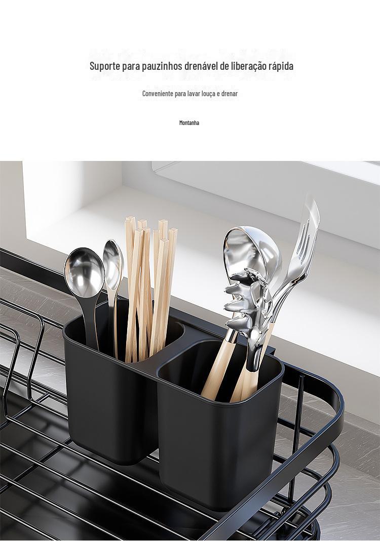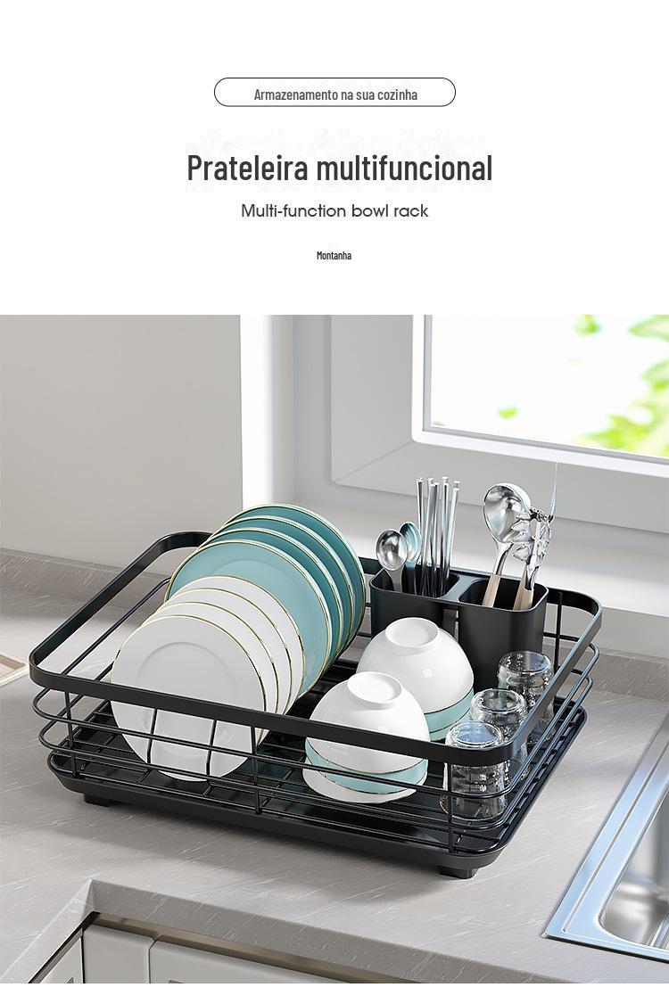 Suporte para tigelas e pratos de ferro de cozinha, suporte para tigelas de drenagem de camada única preta, suporte para tigelas e pauzinhos multifuncionais