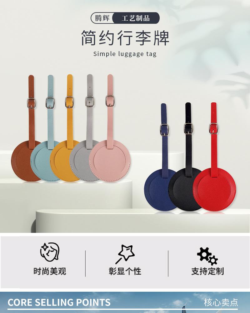 Cross-border spot multi-color impressão cartão de papel pode ser definido corporativo LOGO redondo grosso pu etiqueta de bagagem de couro atacado