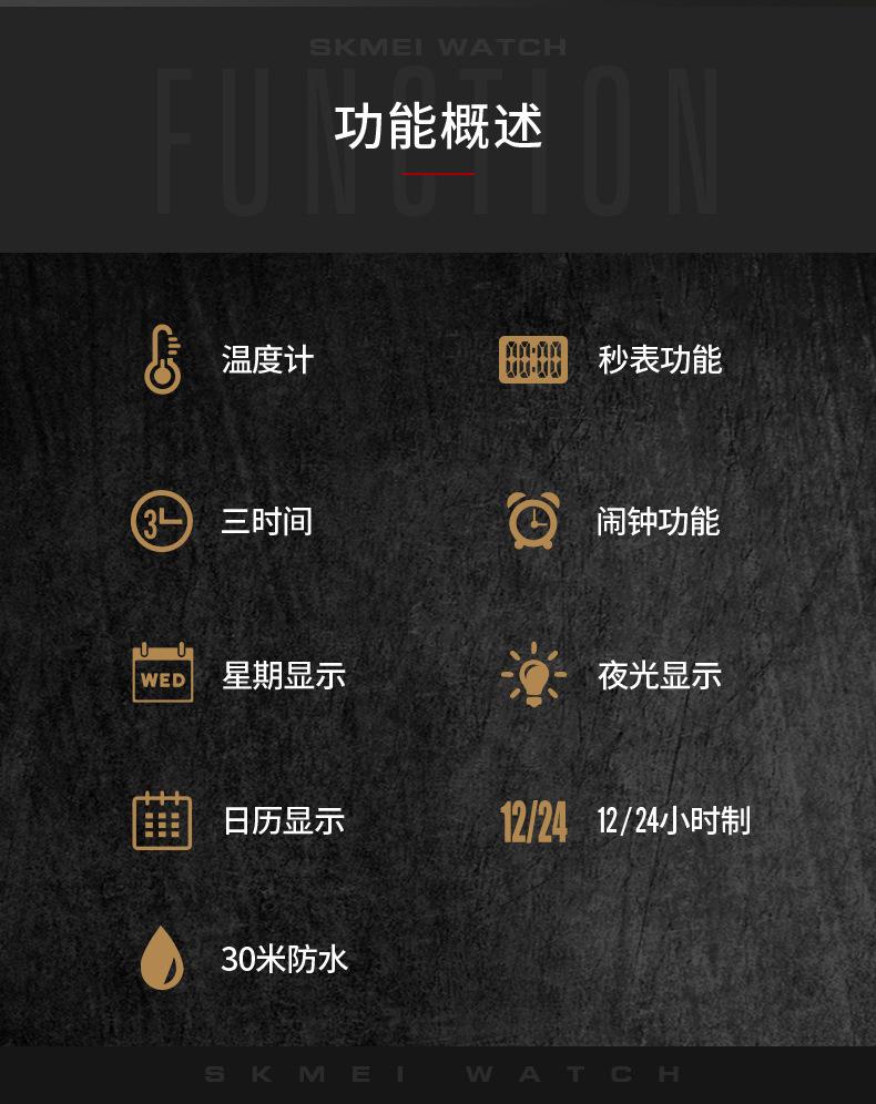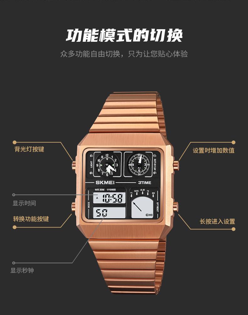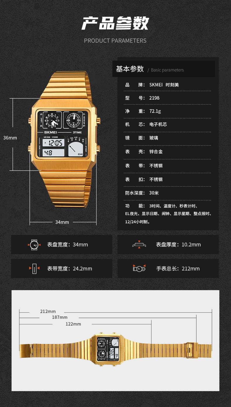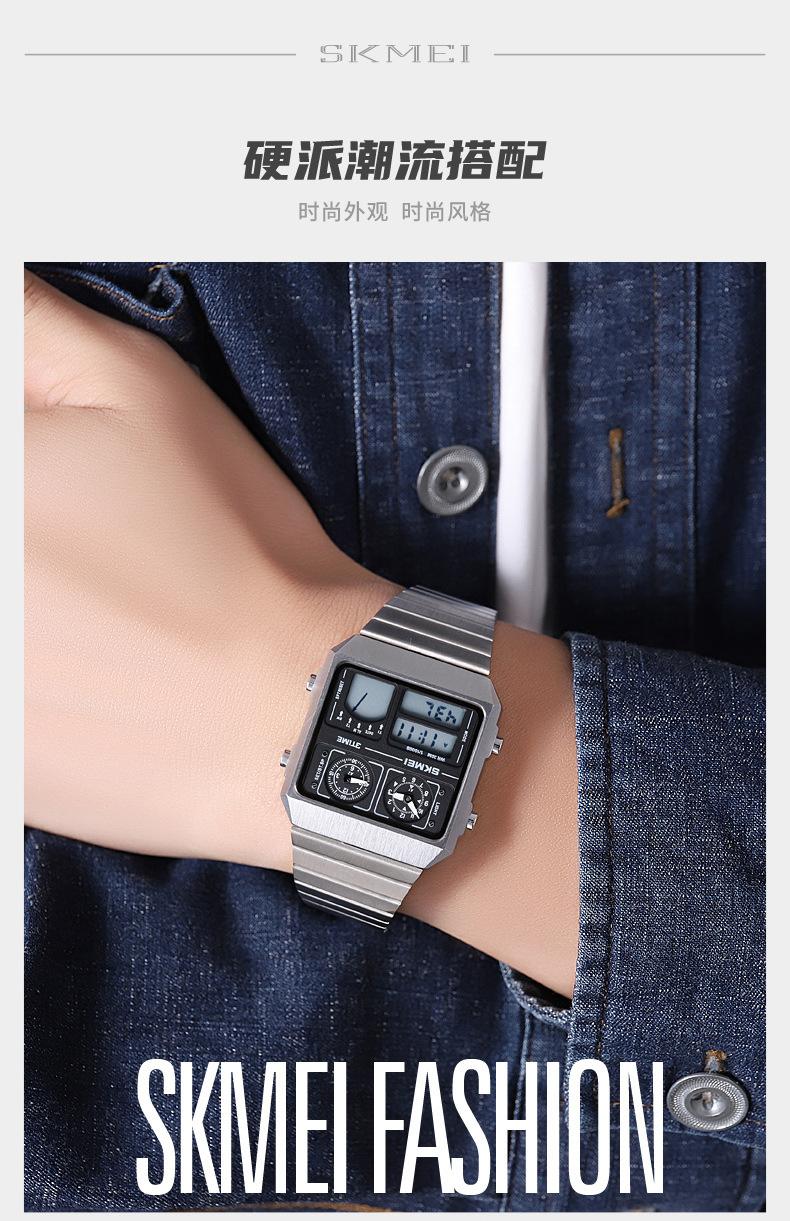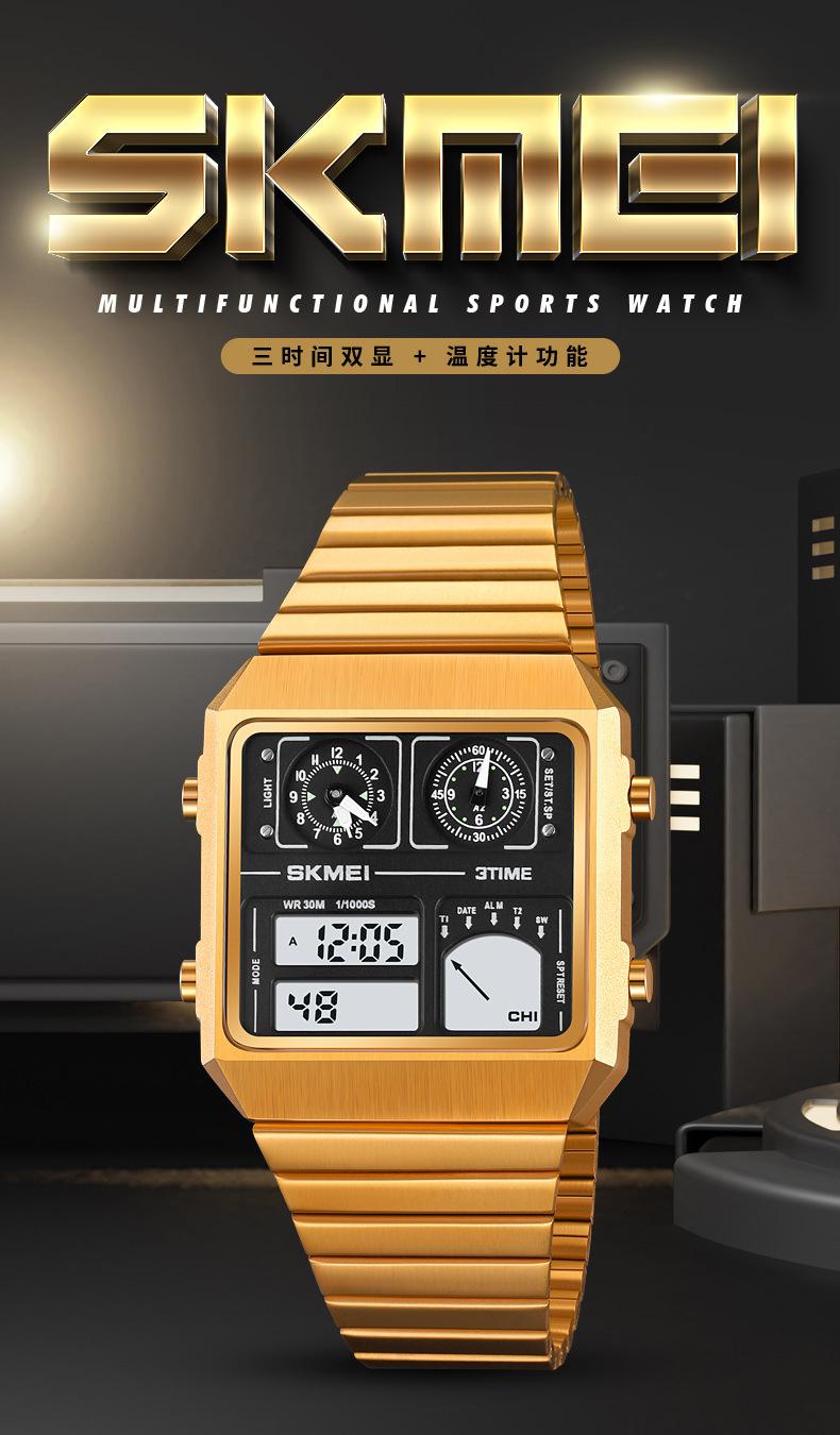 Skmei cross-border relógio eletrônico masculino relógio quadrado masculino multifuncional esportivo termômetro à prova d'água relógio eletrônico