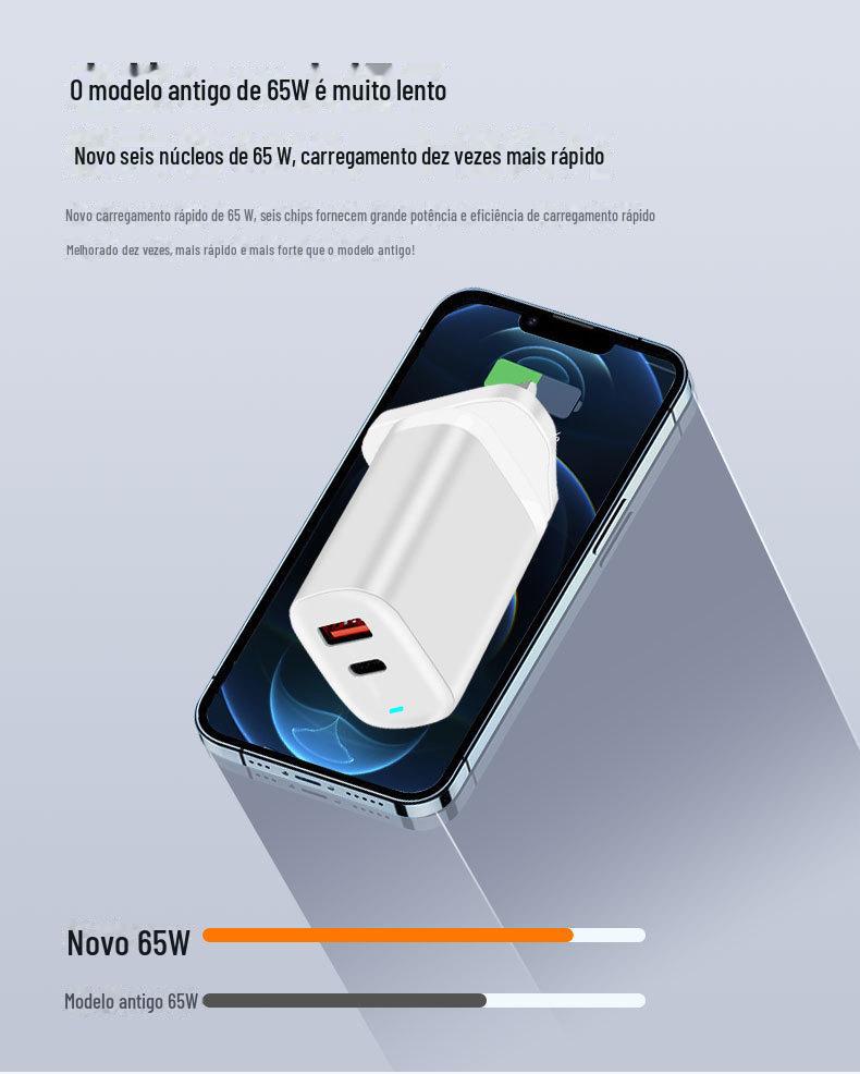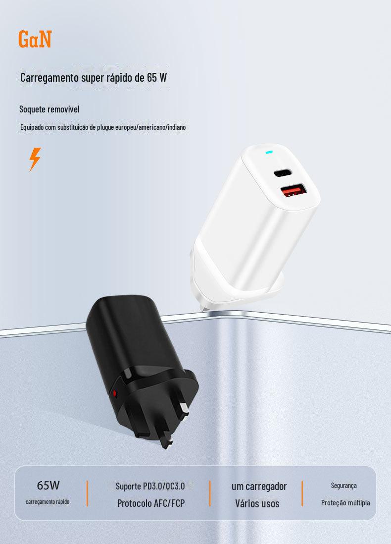 Carregador padrão britânico de nitreto de gálio de 65 W transfronteiriço, multiporta, acordo total aplicável à certificação de carga rápida Samsung Apple 15 Huawei