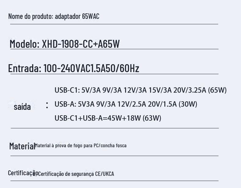 A + C port PD65W British standard plug + American standard plug + European standard plug + Indian standard plu...