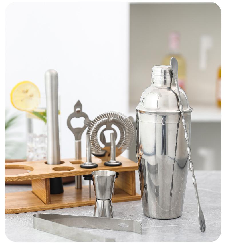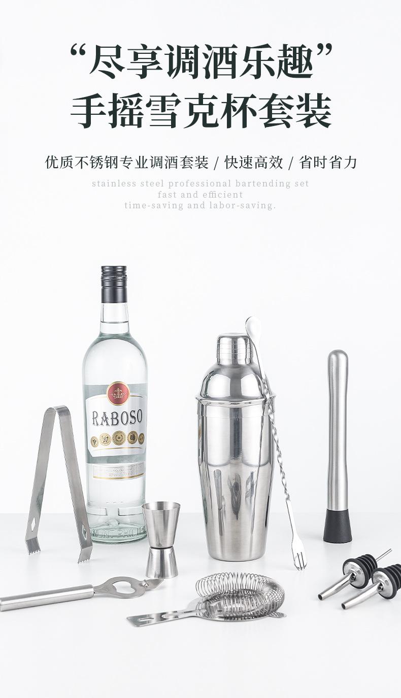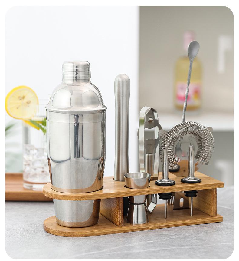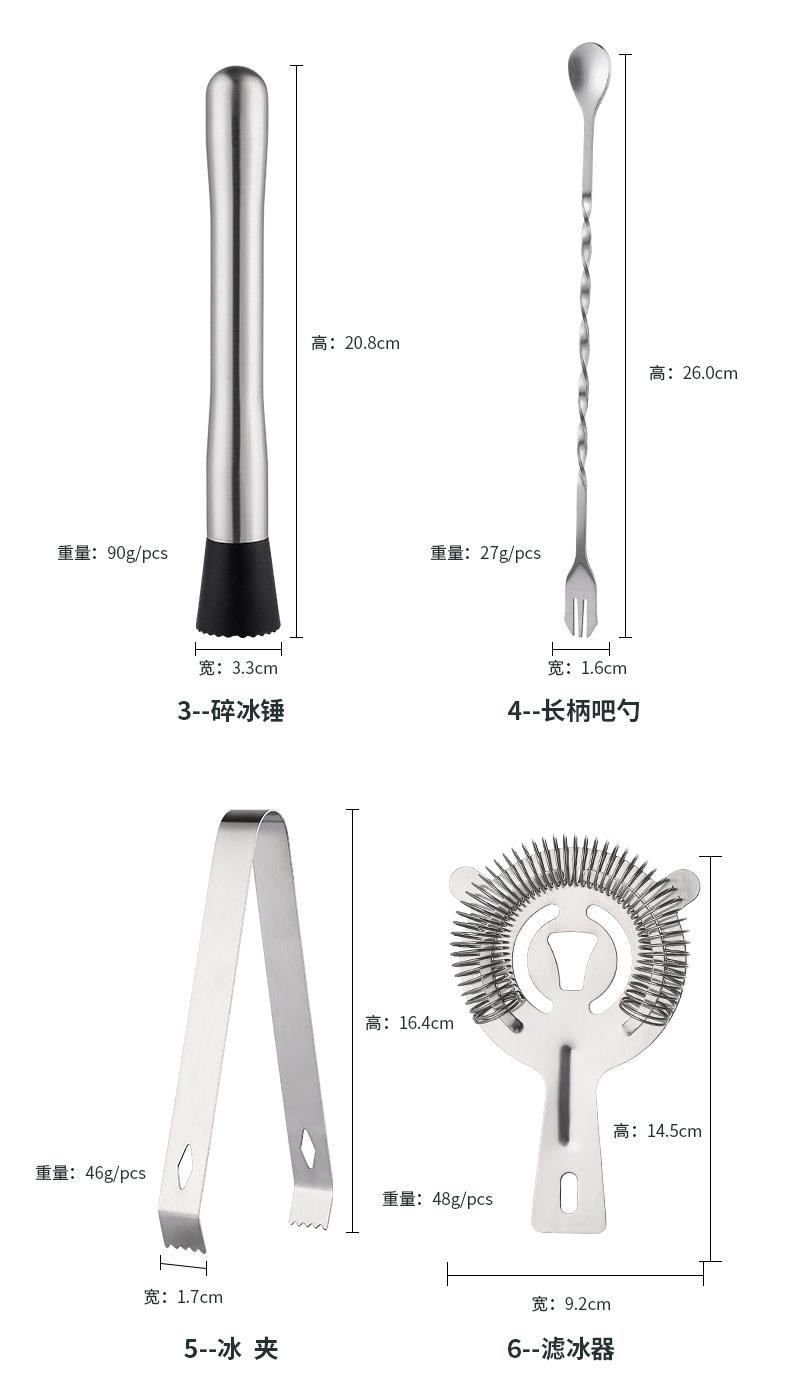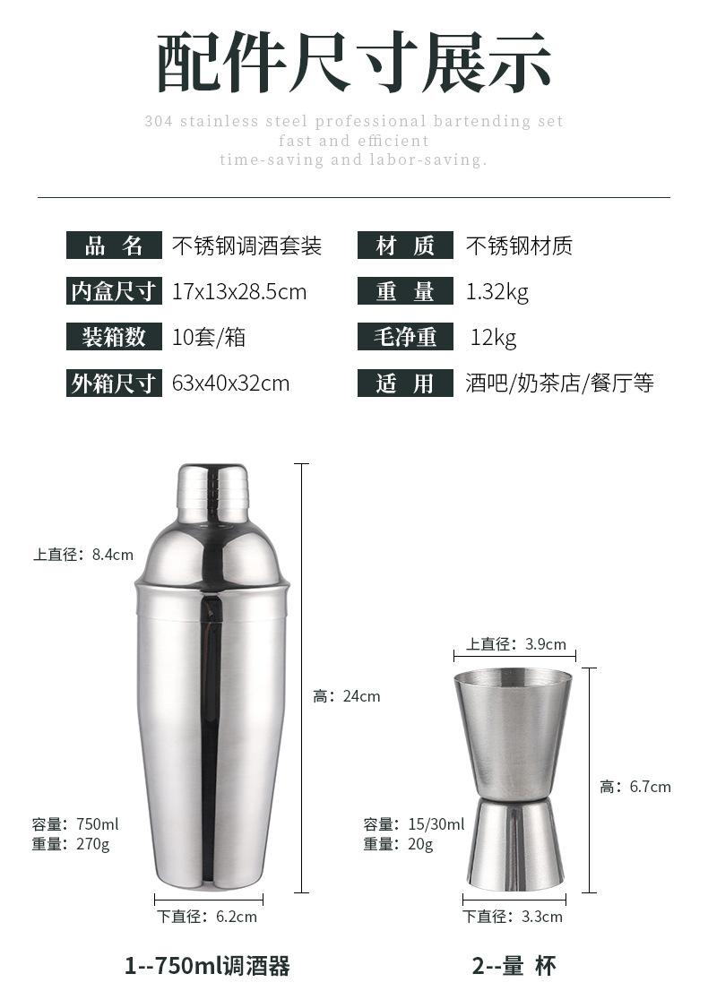 Fornecimento Direto Transfronteiriço de Ferramentas de Bartending Conjunto de 10 Peças Conjunto de Mixer de Aço Inoxidável Copo Misturador de Coquetéis Copo Shaker Conjunto Completo