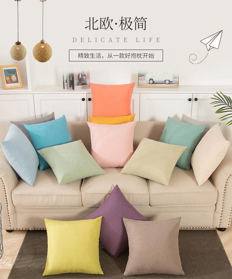 Almofada de Sofá Estilo Escandinavo Sala de Estar Almofada de Cintura Cor Pura Linho Almofada de Cintura Almofada de Encosto de Cabeceira Fronha Lisa