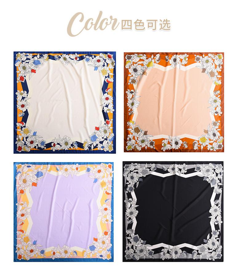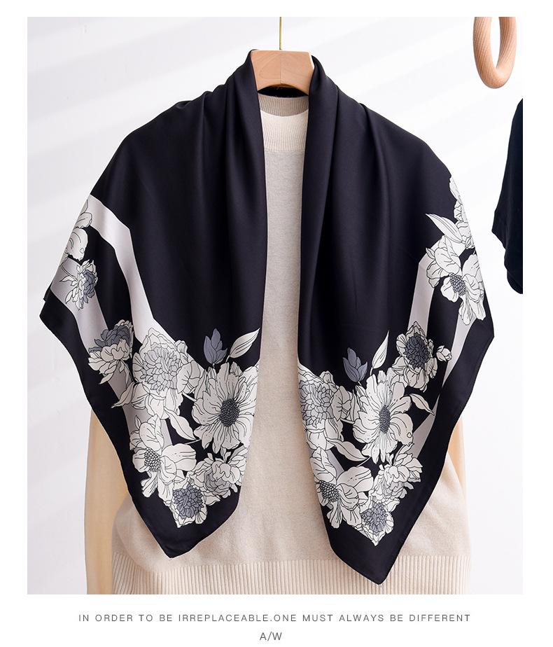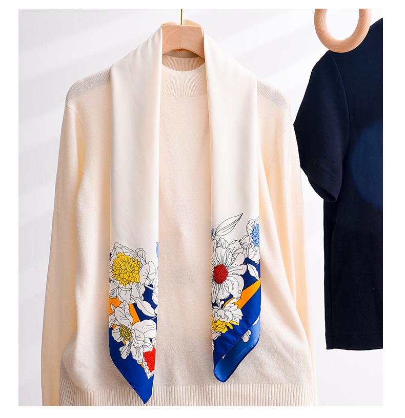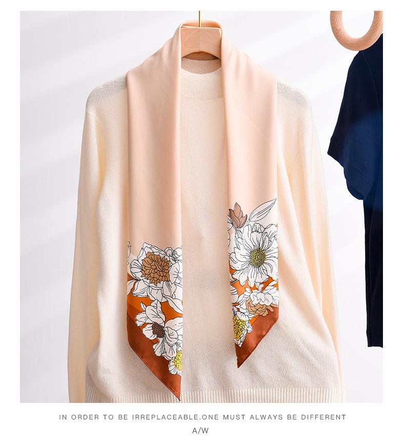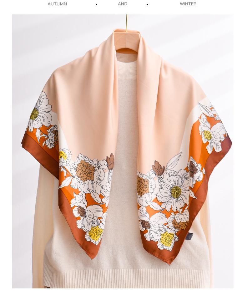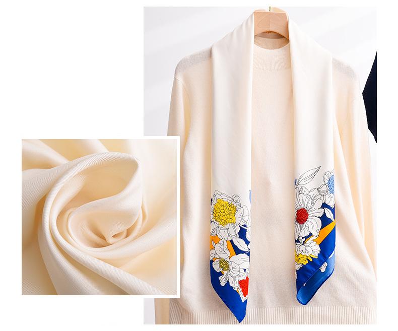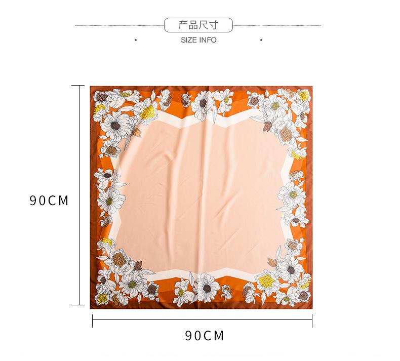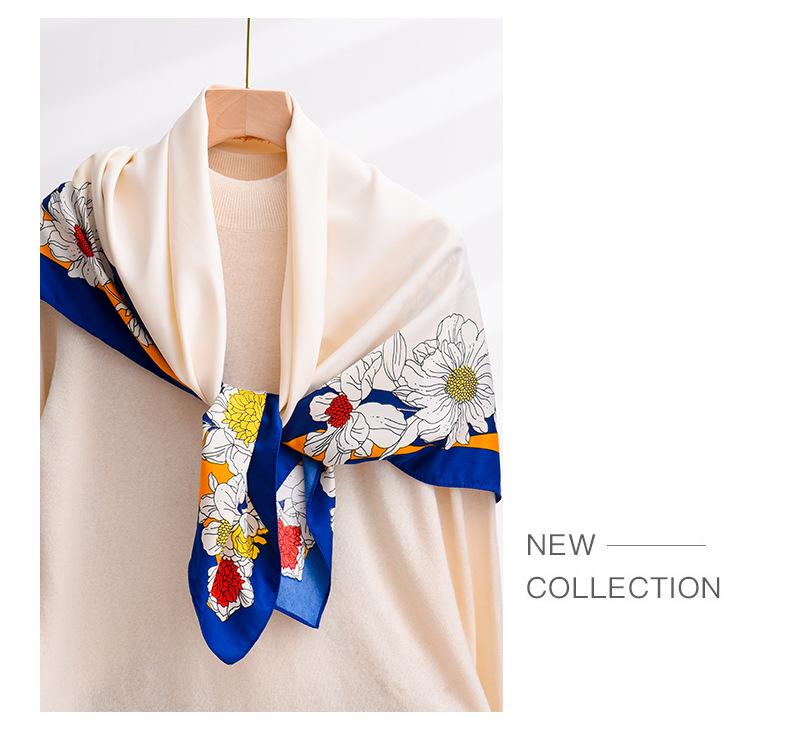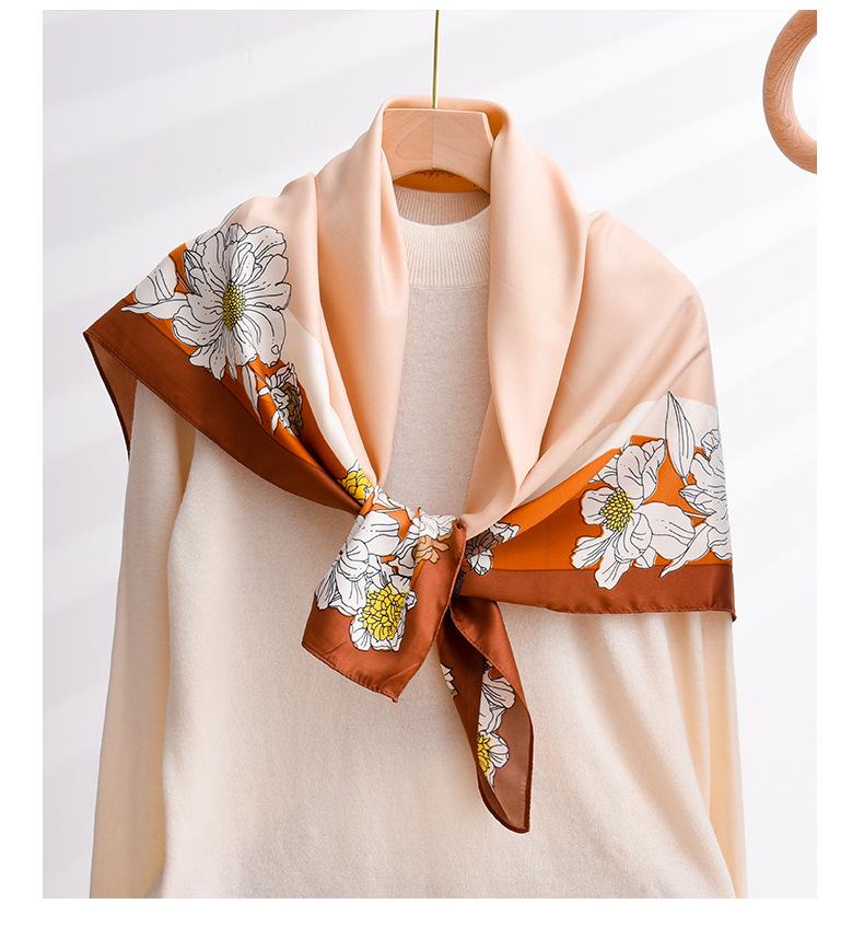 Primavera e verão novo estilo impresso lenço de seda camélia 90 grande lenço quadrado atacado senhoras proteção solar lenço de seda acessórios