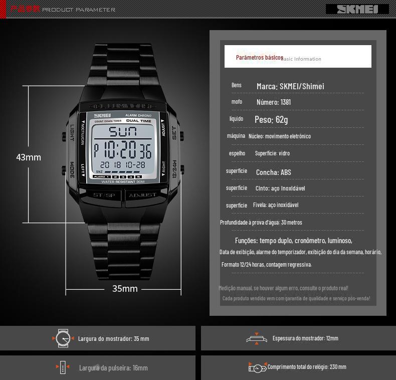 Relógio Masculino Multifuncional Momentum Luminoso À Prova D'água Esportivo Digital Relógio LED Relógio Digital Atacado Homens