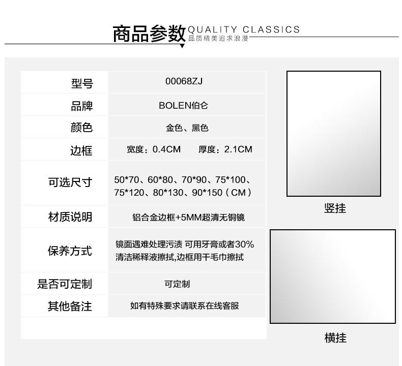 Bolen Espelho de Banheiro de Luxo Acessível em Ângulo Reto Lavatório Montado na Parede Espelho de Banheiro Moldura de Liga de Alumínio Montado na Parede