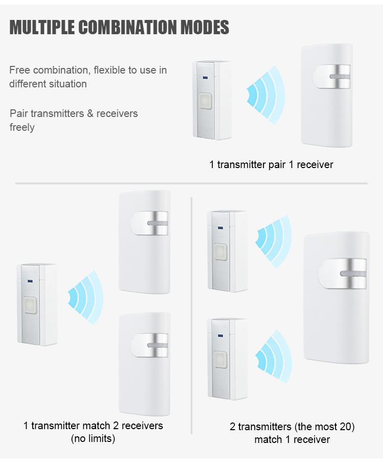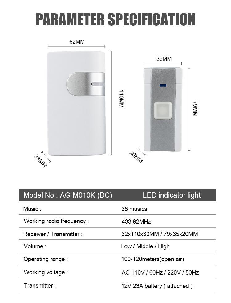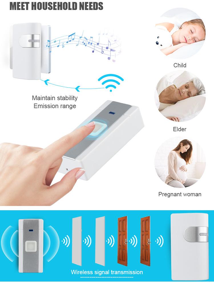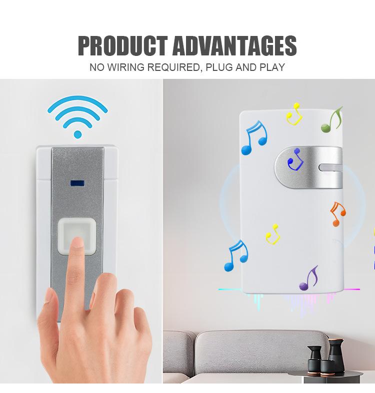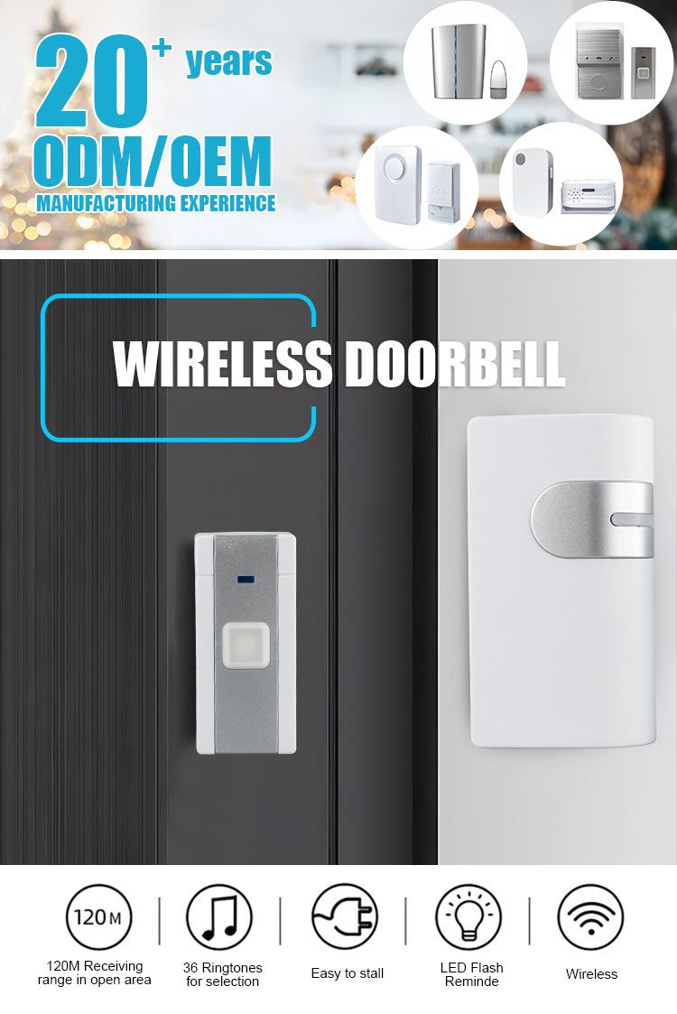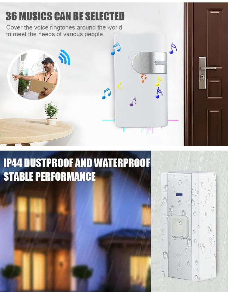 36 música campainha sem fio controle remoto distância longo volume de som casa campainha eletrônica operação da bateria