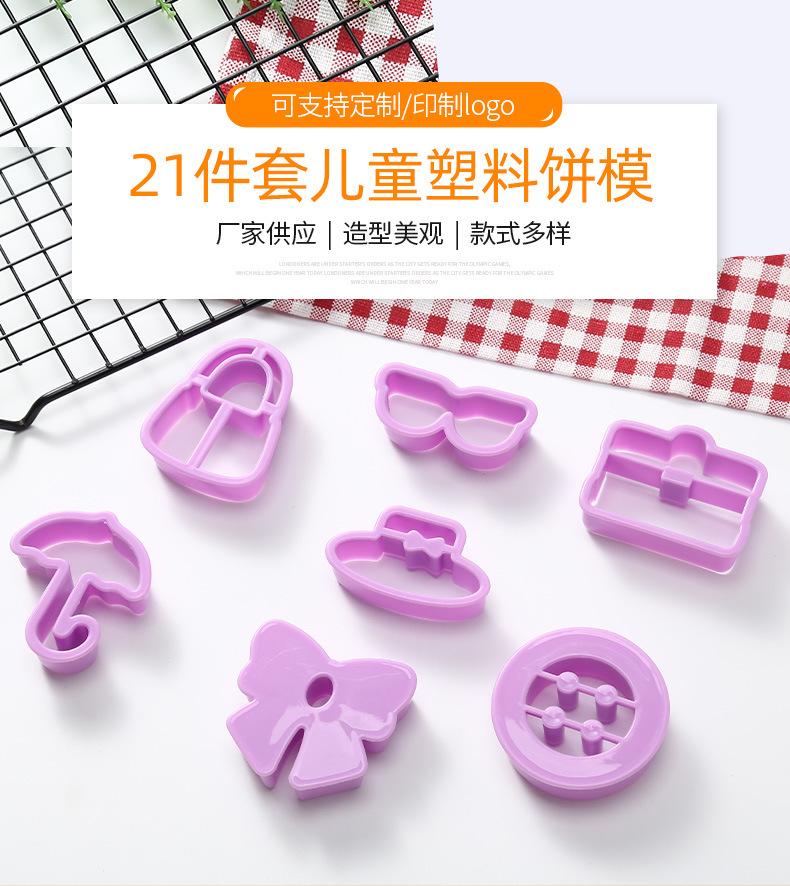 21 Piece Set Crianças Plástico Cookie Molde Bolo Ferramentas de Panificação Salto Alto Saia Óculos Guarda-chuva Forma Molde dos desenhos animados
