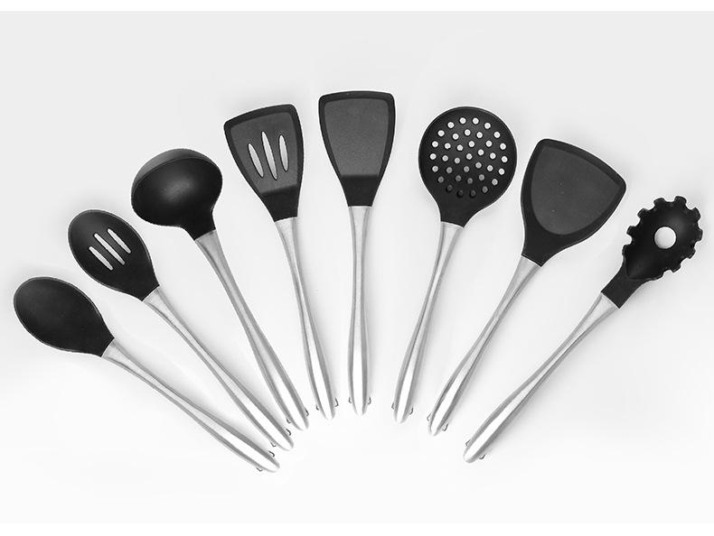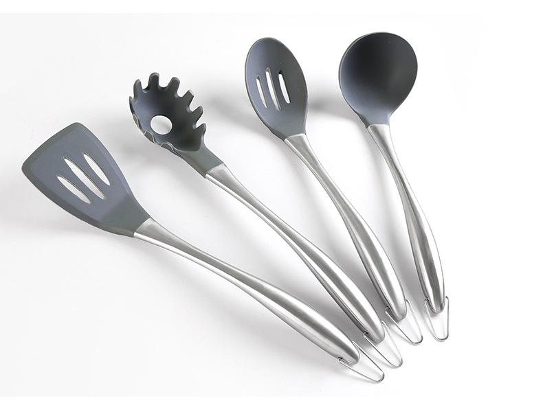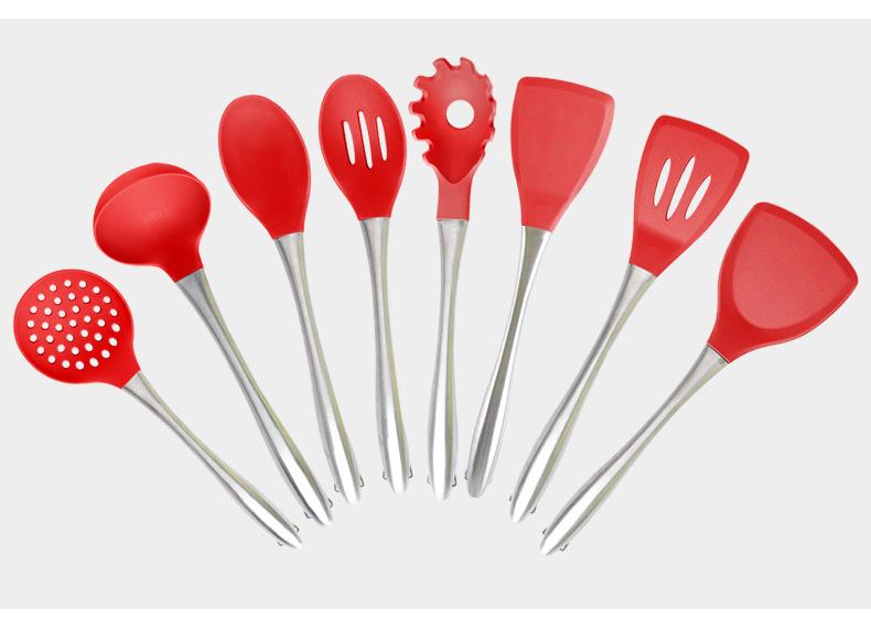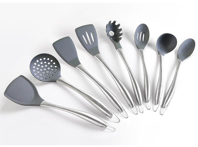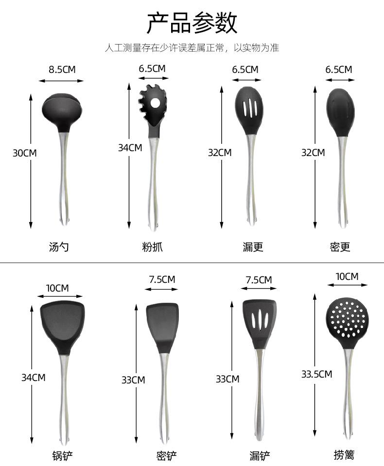 Nome: Amazon silicone colher de sopa de aço inoxidável espátula suprimentos de cozinha utensílios de cozinha antiaderentes ferramentas de cozinha resistentes a altas temperaturas atacado