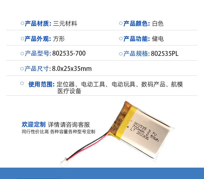 802535(700mAh)Lata de lixo inteligente de célula de bateria de 3,7 V Brinquedo equilíbrio eletrônico carro polímero bateria de lítio