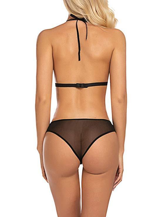 Fornecimento de comércio exterior Europa e Estados Unidos nova sexy pendurado pescoço impressão de uma peça três pontos sexy roupa íntima fábrica vendas diretas