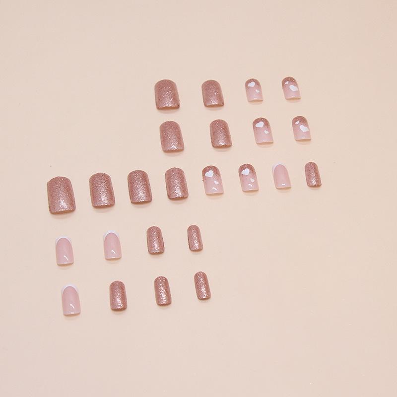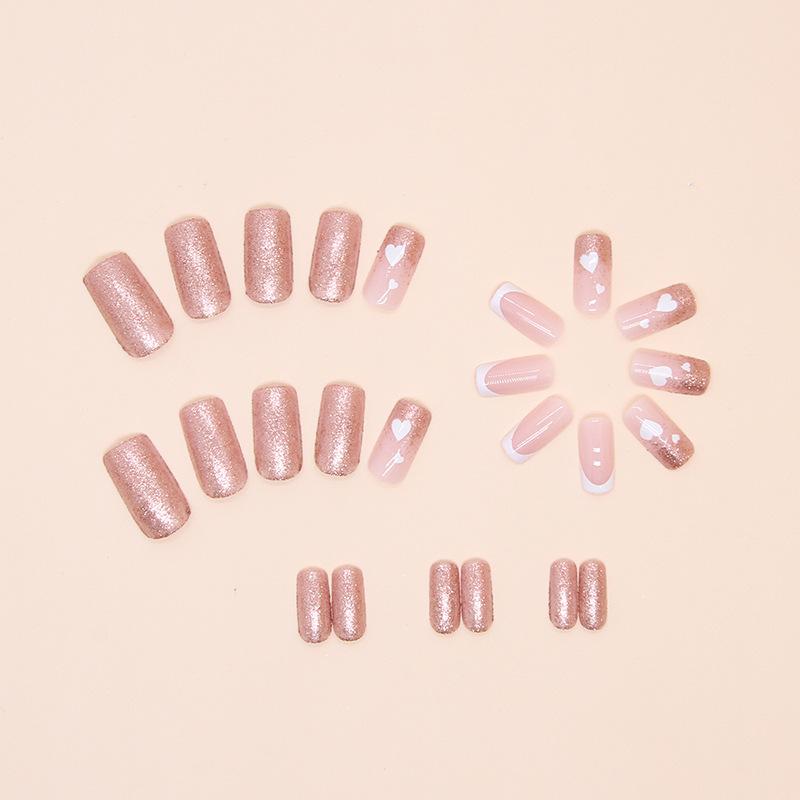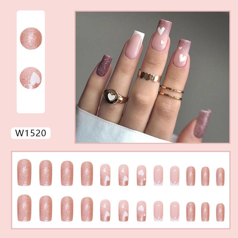 Rosa brilhante doce amor manicure europeu e americano unhas postiças branco puro desejo francês vestível unha peça de beleza