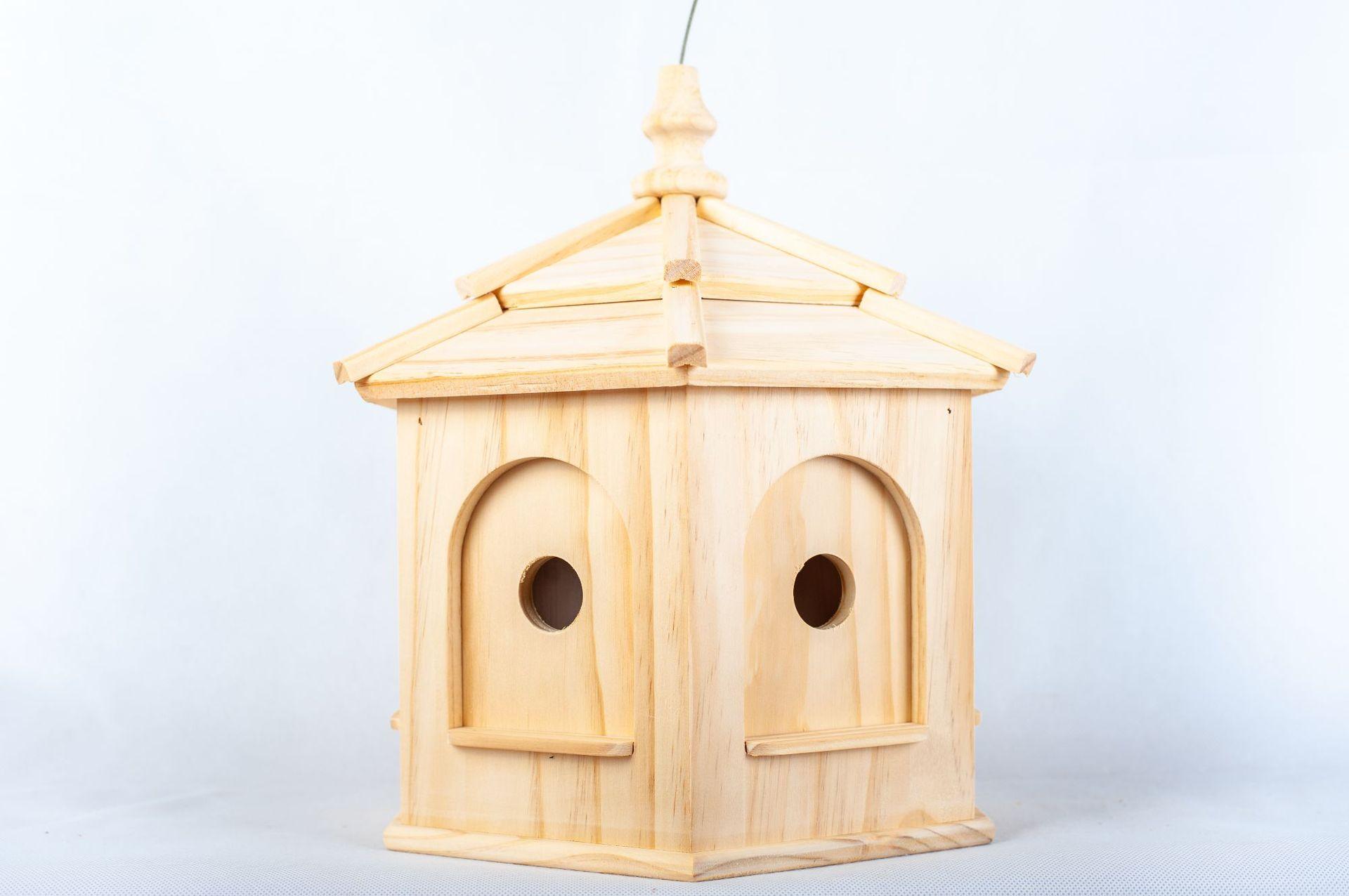 Casa de pássaros de madeira maciça personalizada, alimentador de pássaros suspenso para pátio externo, estilo casa de madeira grande, beirados, ninho de pássaros, casa de pássaros