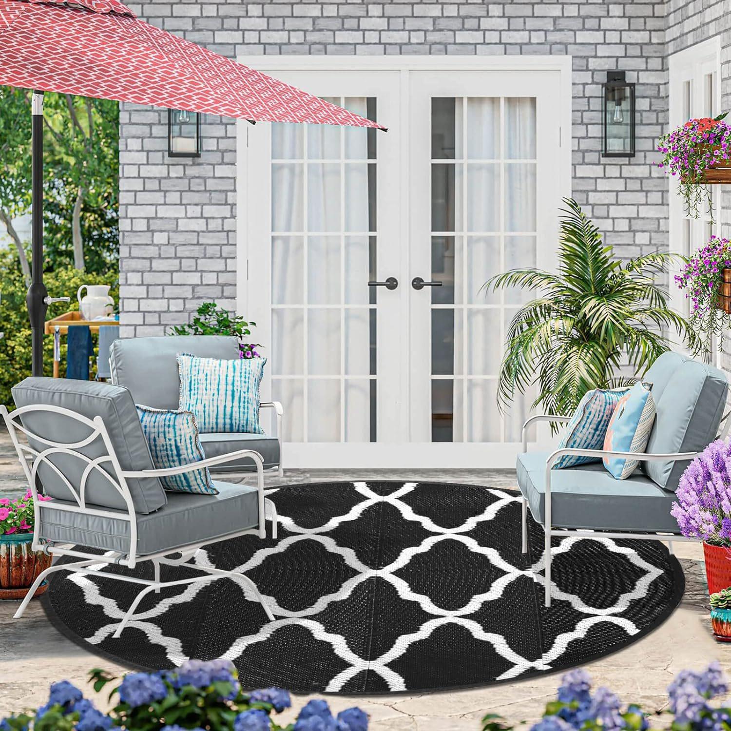 Tapete redondo dobrável, fácil de limpar e portátil, popular na Amazon, para áreas internas e externas, para acampamento em RV