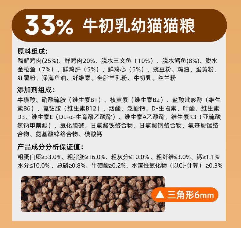 【Leite de Cabra Colostro Bovino Comida para Gatinhos】33% proteína bruta, adicionado 3 tipos de carne de peixe de águas profundas e DHA/EPA, grânulos triangulares de 6mm. Fórmula de leite de cabra colostro bovino, ajuda no crescimento de gatinhos, cuidado científico com animais de estimação, específico para animais de estimação, produzido por uma fábrica forte, fornece aos gatinhos nutrição completa.