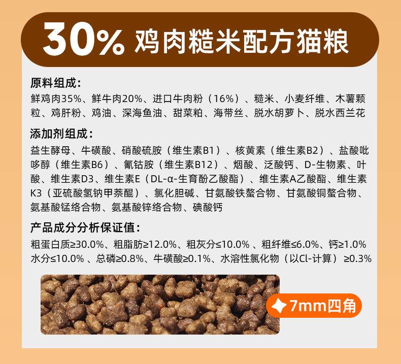【Ração Digestiva para Gatos Frango e Arroz Integral】30% de proteína bruta, probióticos adicionados, grânulos de 7mm em forma de flor de ameixeira de quatro pontas. Alto teor de fibras promove a digestão, frango e arroz integral aliviam a carga estomacal, produzido por uma fábrica forte, cuida do estômago do gato.