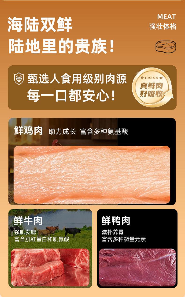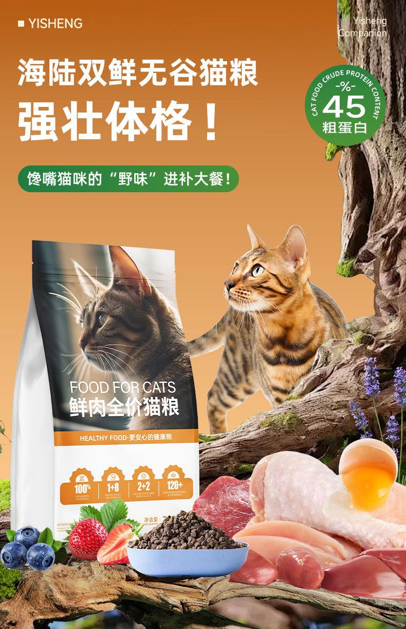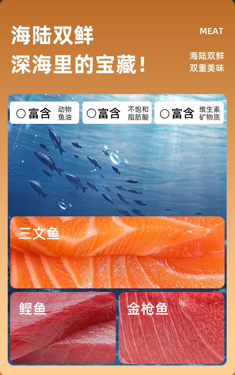 【Comida para Gatos Nível Show Duplamente Fresca de Mar e Terra】45% de proteína bruta, seis tipos de carne em uma mordida, ração triangular de 5mm. Fórmula nível show duplamente fresca de mar e terra, fácil de digerir e absorver, produzida por uma fábrica forte, ajuda os gatos a alcançarem um físico nível show.
