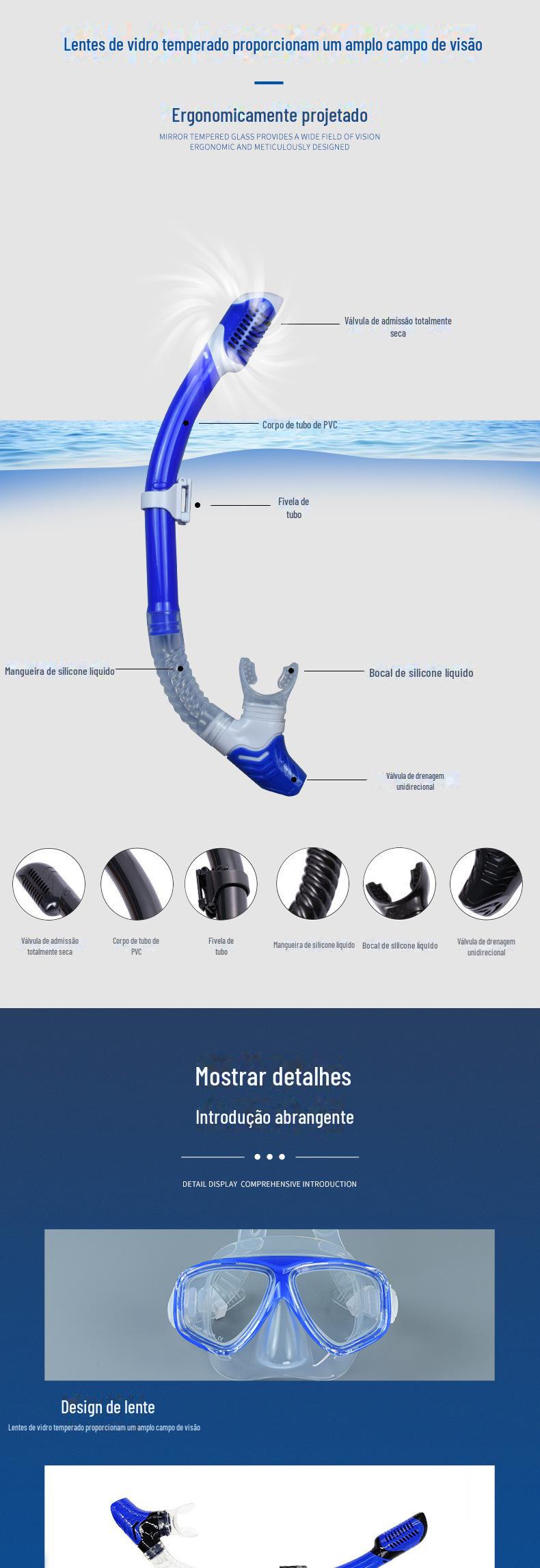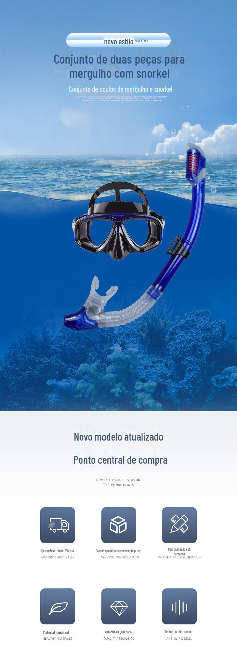 Novos óculos de mergulho traje de tubo de respiração grande armação de silicone espelho tubo de respiração seco completo traje de mergulho máscara de mergulho
