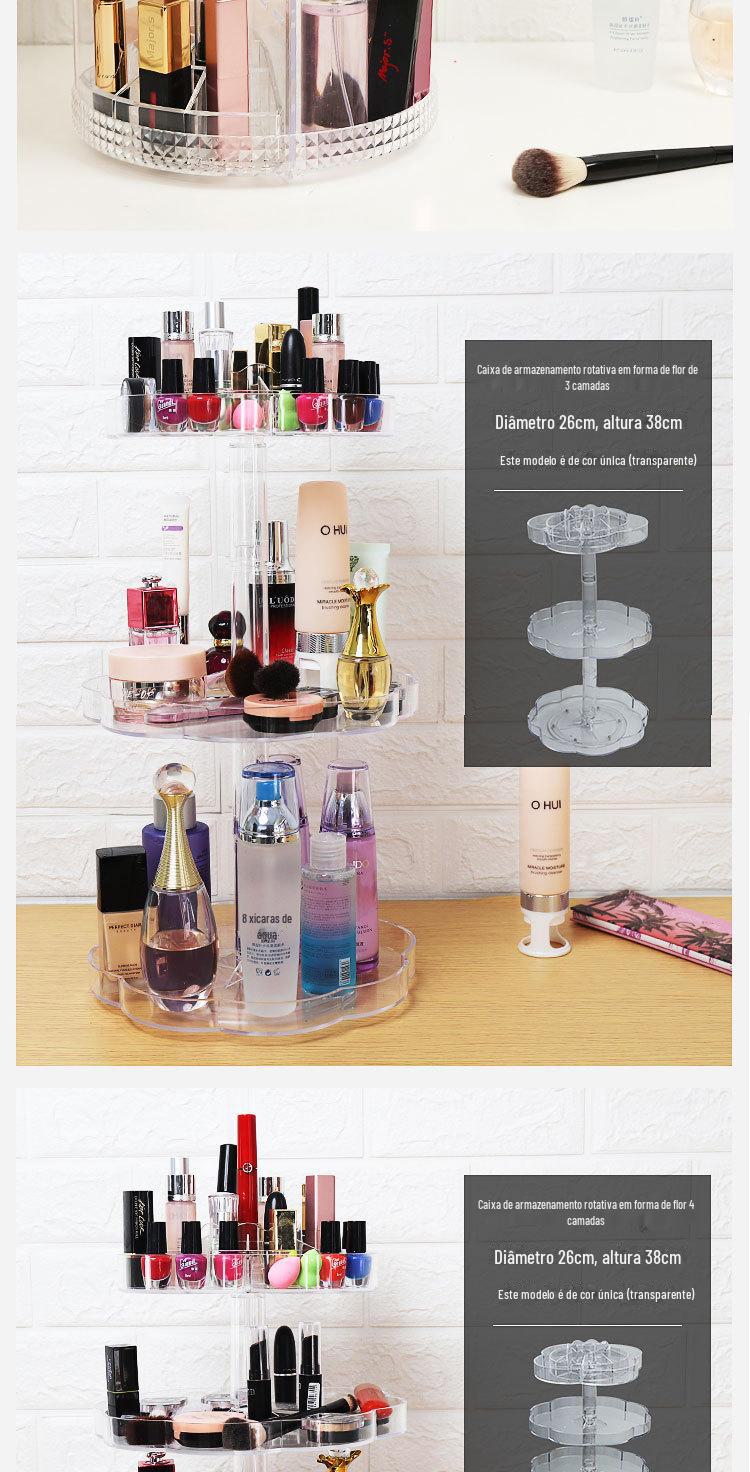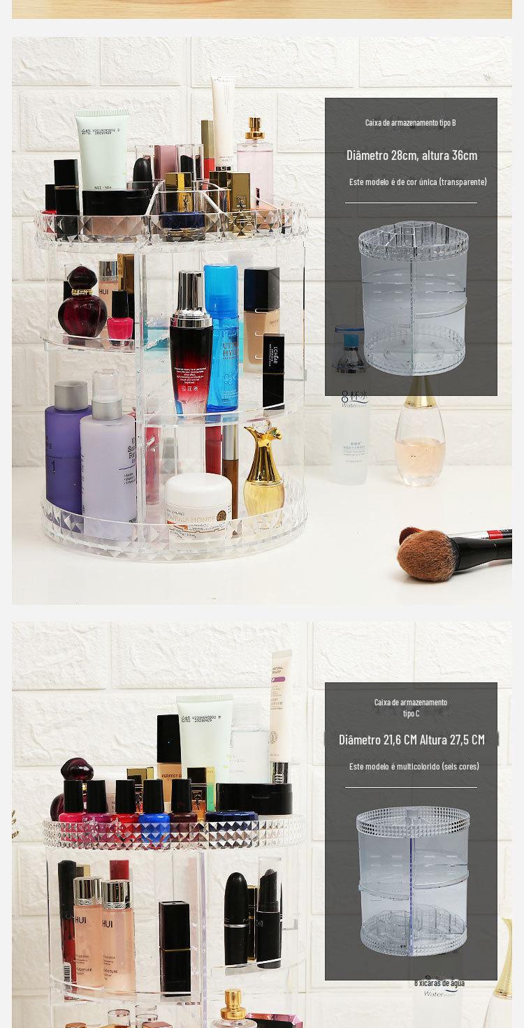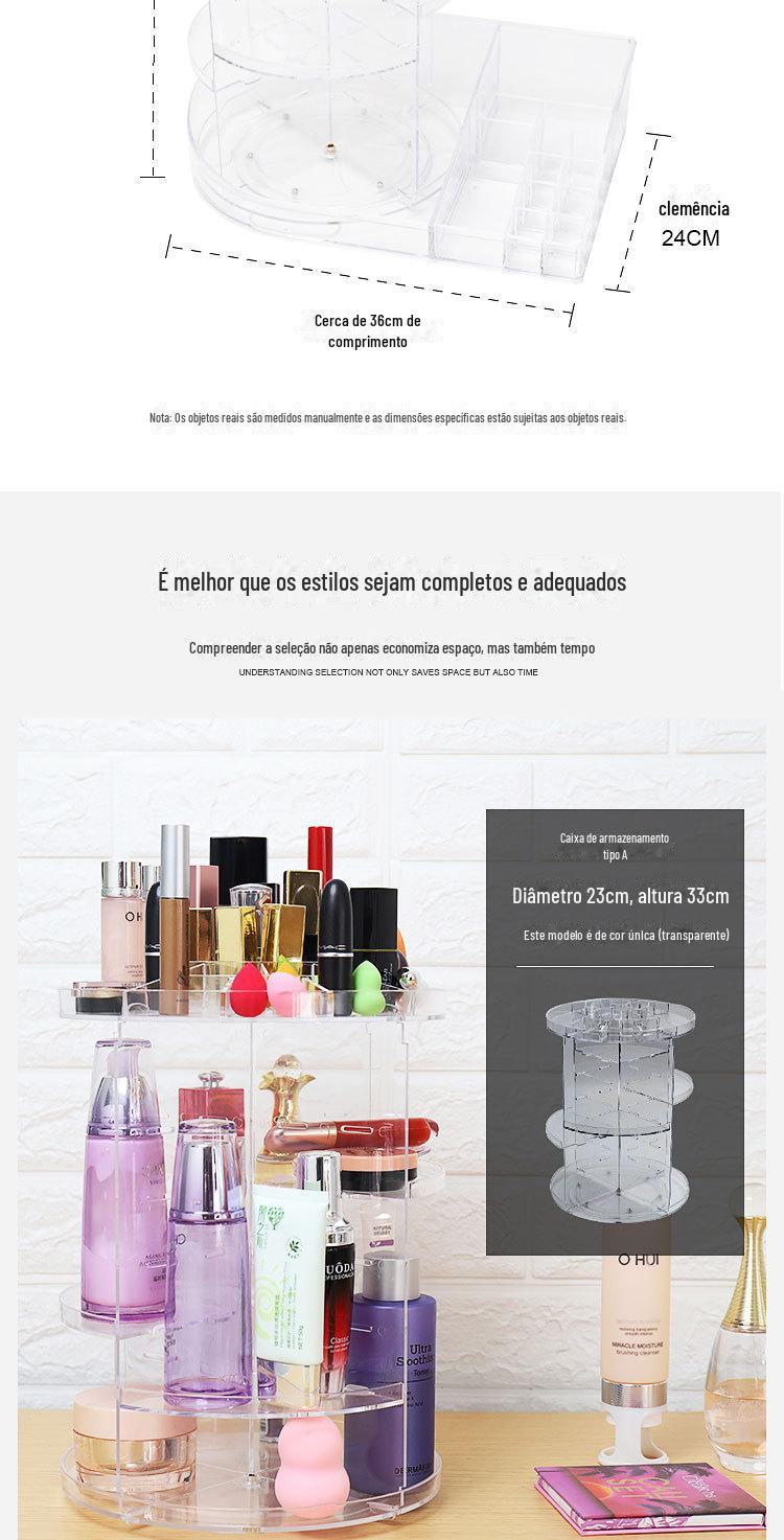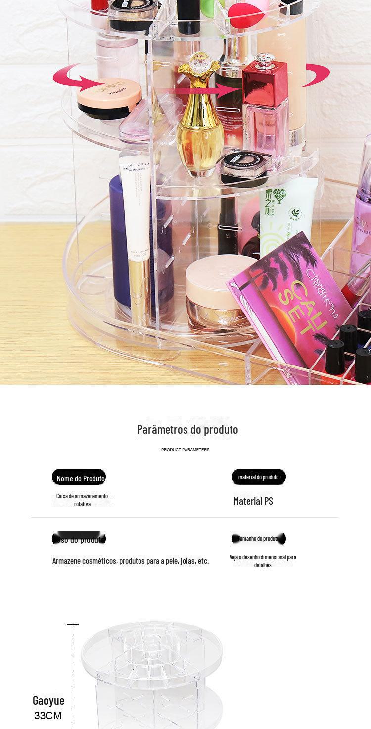 Caixa de armazenamento cosmético rotativo transparente Desktop batom doméstico Dressing Table estilo europeu caixa cosmética rack de cuidados da pele