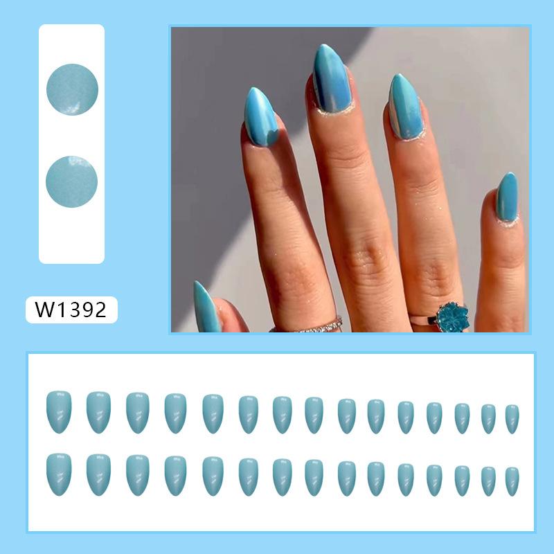 Compre Simples azul aurora menina elegante europeu e americano ins estilo moda falsa unha produto acabado branco 30 peças manicure no atacado no Joom.pro