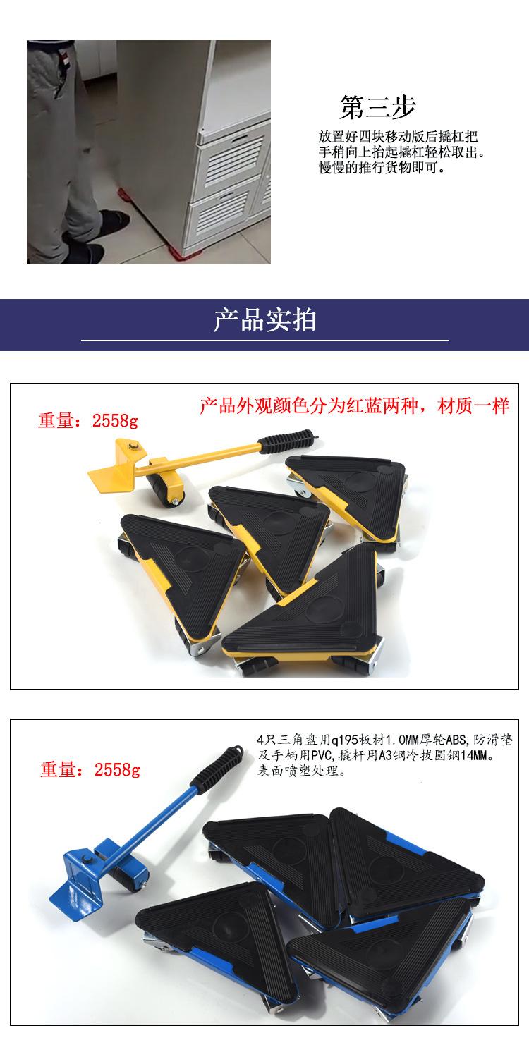 As 4 placas triangulares são feitas de placa q195, ABS de roda com 1,0 MM de espessura, a almofada antiderrapante e a alça são feitas de PVC e a alavanca é feita de aço A3 redondo estirado a frio de 14 MM. Tratamento superficial por pulverização.