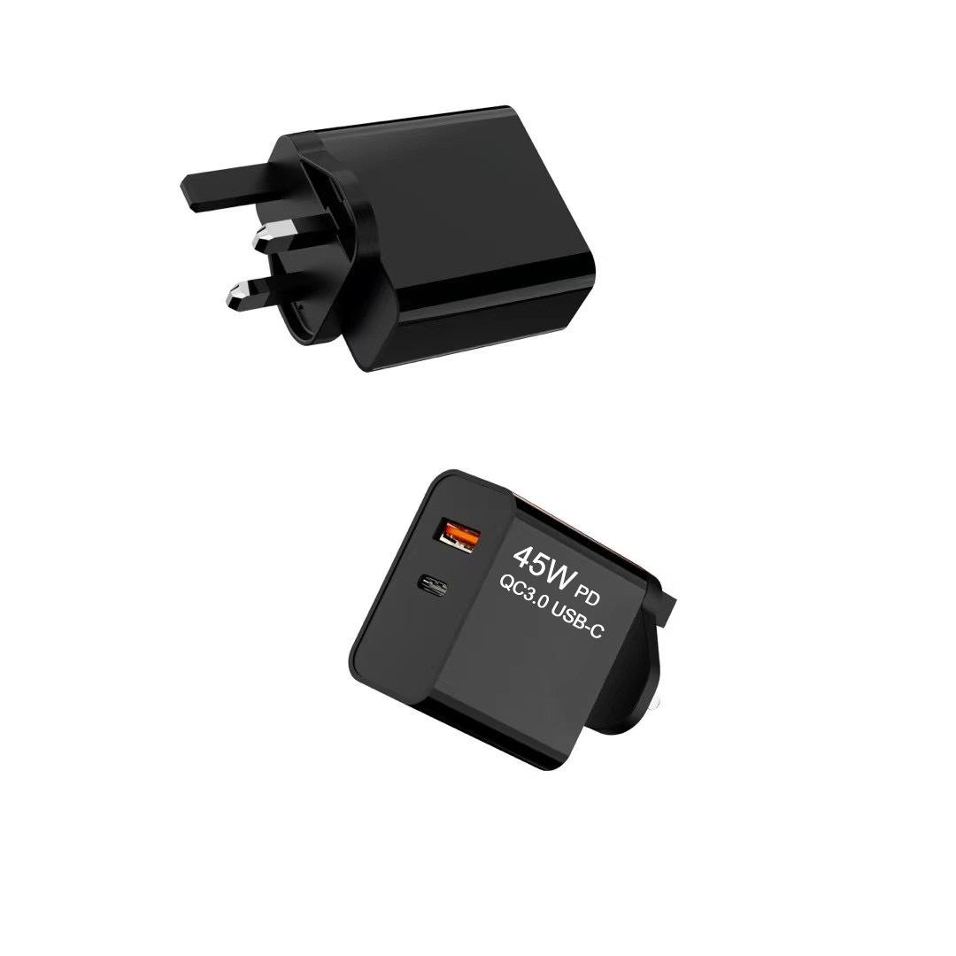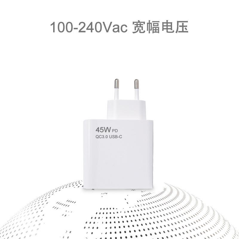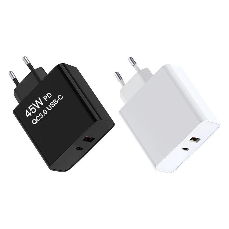Nitreto de gálio PD45W carregador de porta dupla de porta única Medidor dos EUA Cabeça de carregamento rápido de certificação de calibre europeu para Huawei Apple
