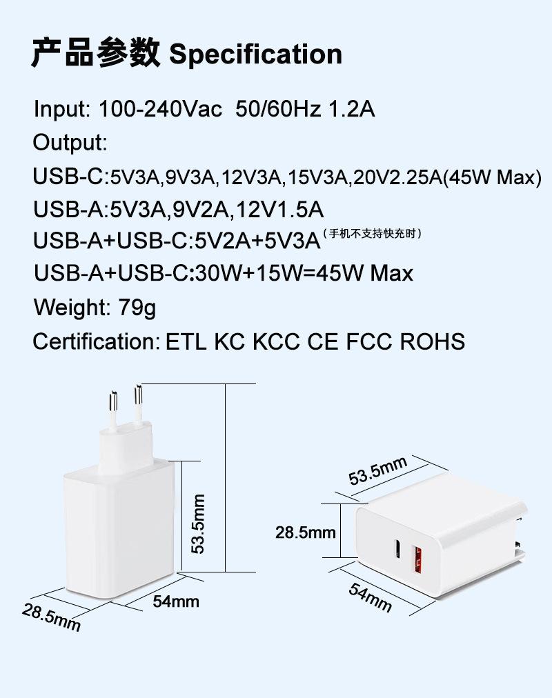 UL PD45W single C single port, CE PD45W single C single port, CCC PD45W single C single port, UL foldAble PD45...