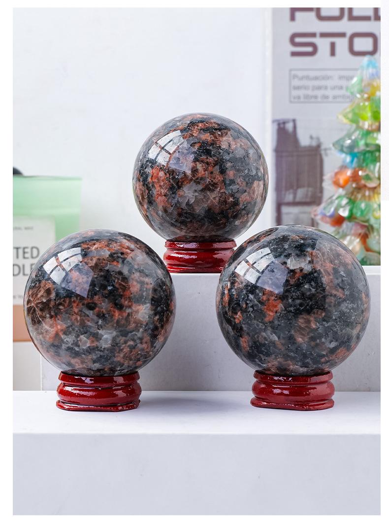 Natural Red amphibole crystal ball (with base)