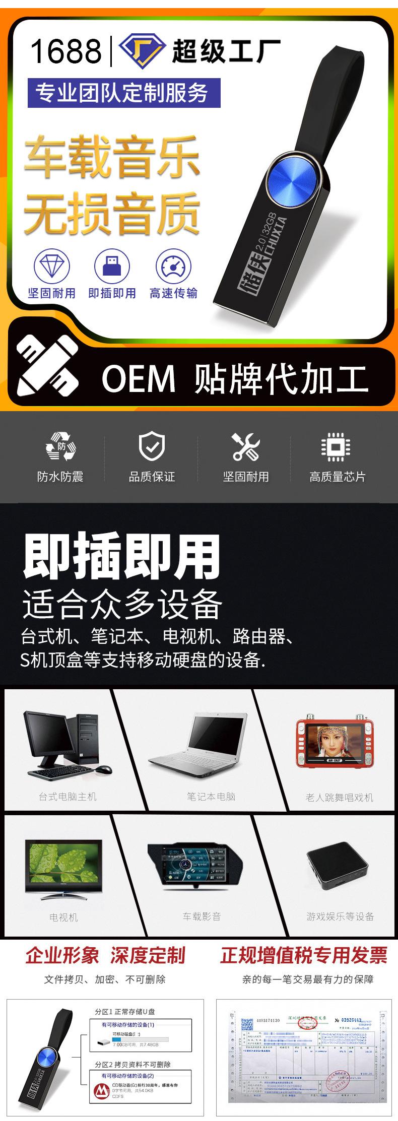 Carro U disco 32g disco vazio 16g alta velocidade 2.0 letras de metal USB disco 64G alto-falante moda música USB disco 128G