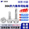 304 aço inoxidável hexágono exterior broca cauda parafuso huashi com cola dovetail auto-rosca auto-perfuração parafuso m4.2-m6.3