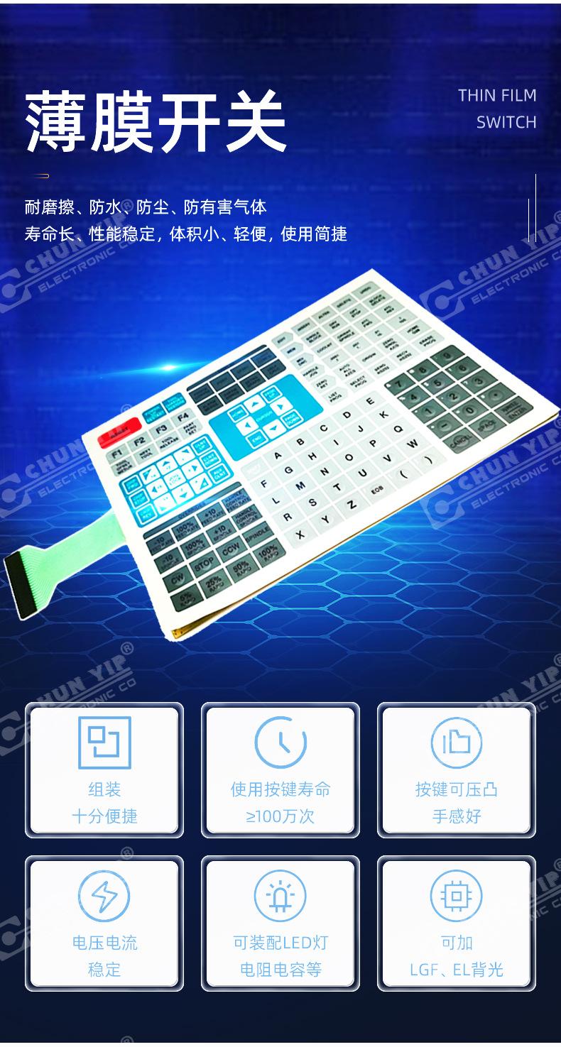 Interruptor de Membrana Eletrônico Médico Painel de Botões de PET Condutivo Superfície de Controle de Instrumento com Certificação IP67