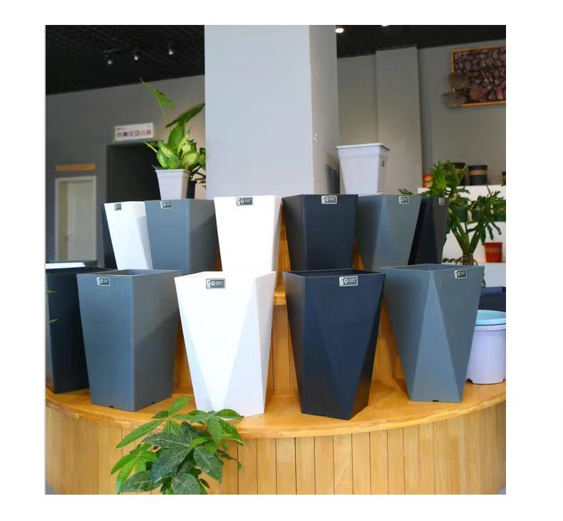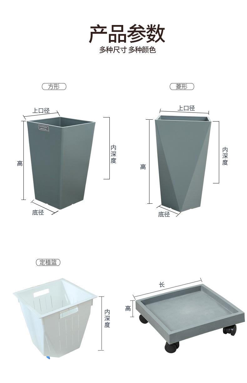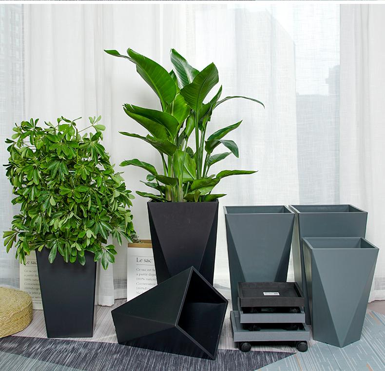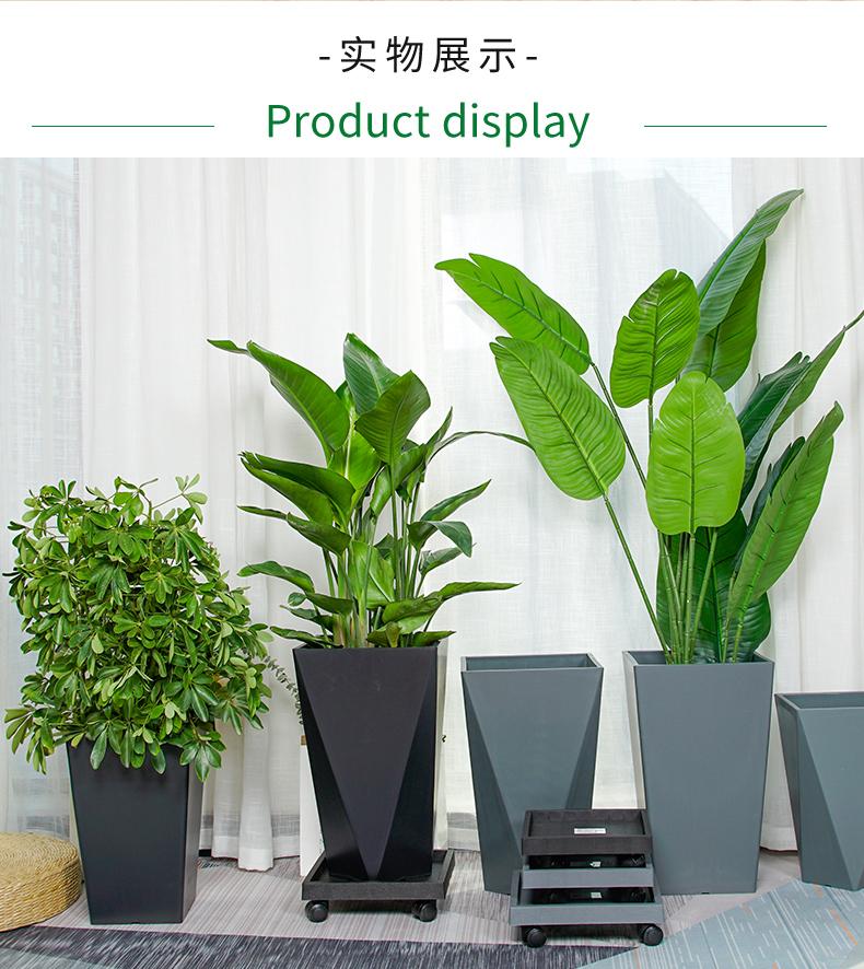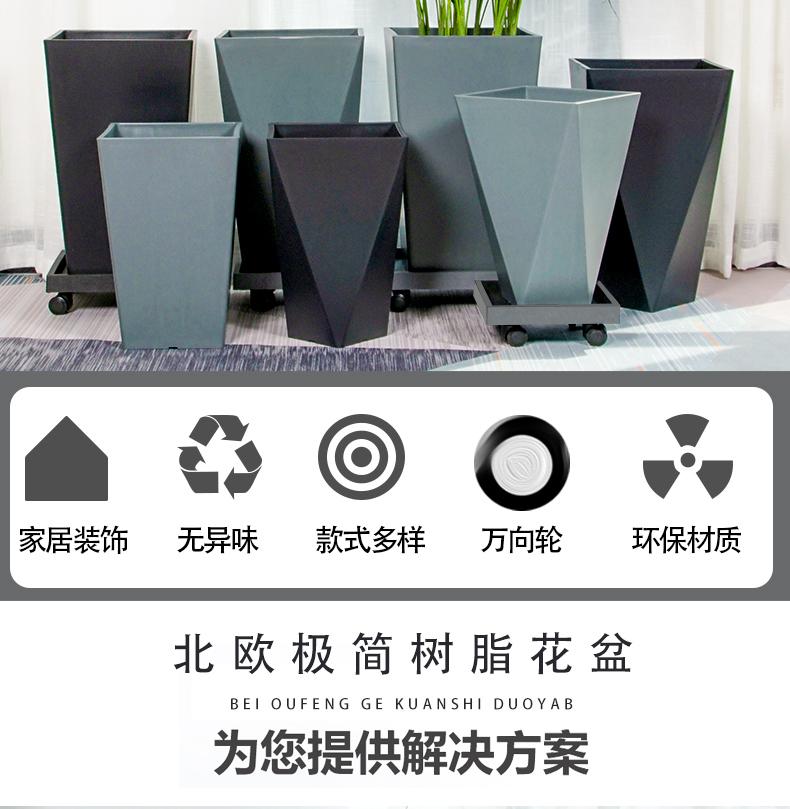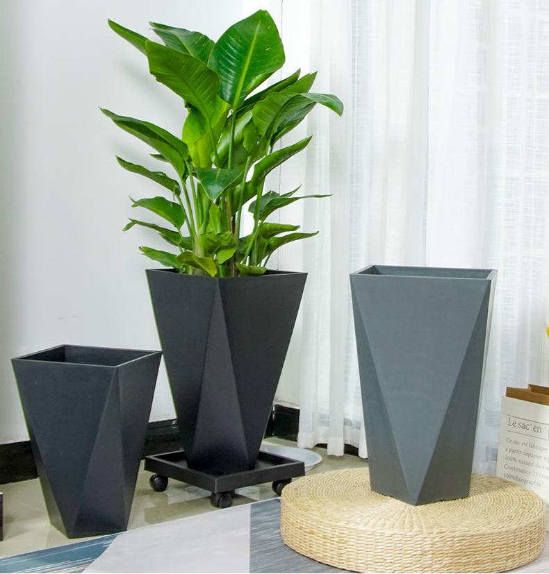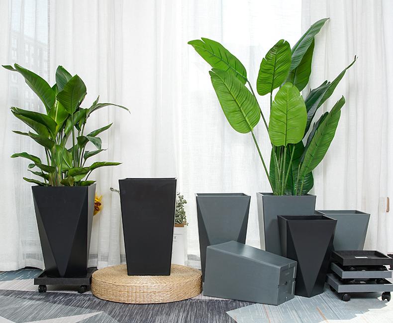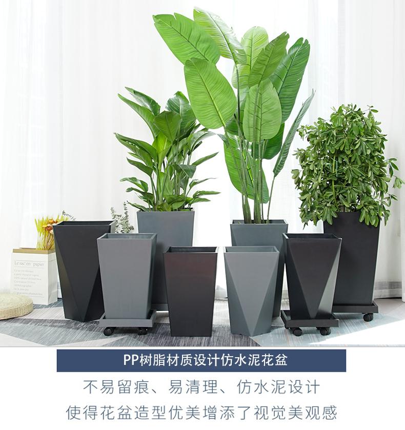 Imitação nórdica vaso de cimento vaso de grande diâmetro retangular de pé de chão sala de estar plantio verde santaei girassol pássaro do paraíso vaso de resina