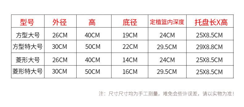 Medium: caliber 26 * high 40cm, Large: Caliber 30 * high 50cm