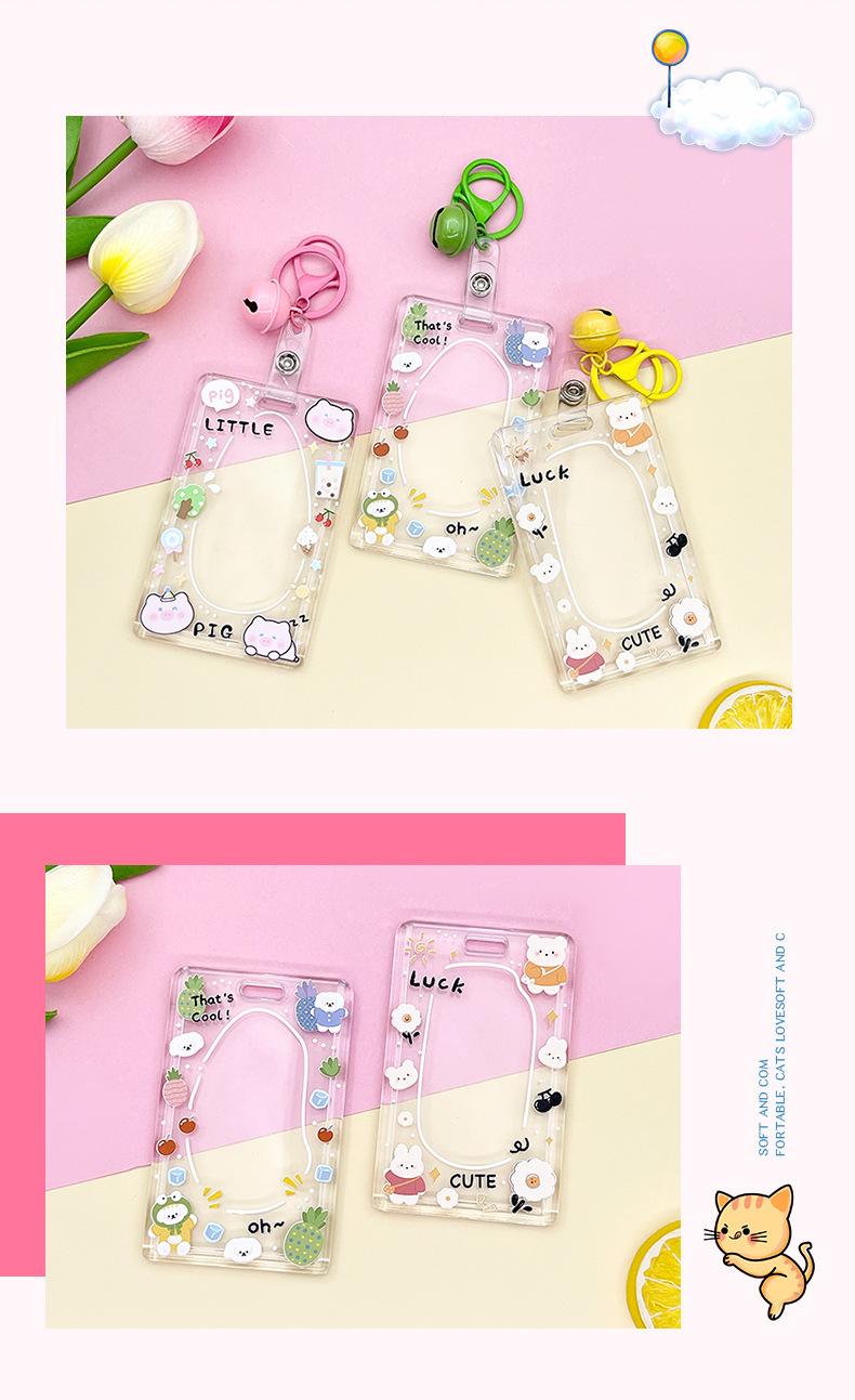 Bonito Cartoon Hard Card Case Estudante Campus Card Library Card Case Protetor Dupla face transparente slide cover embossed Card Bag