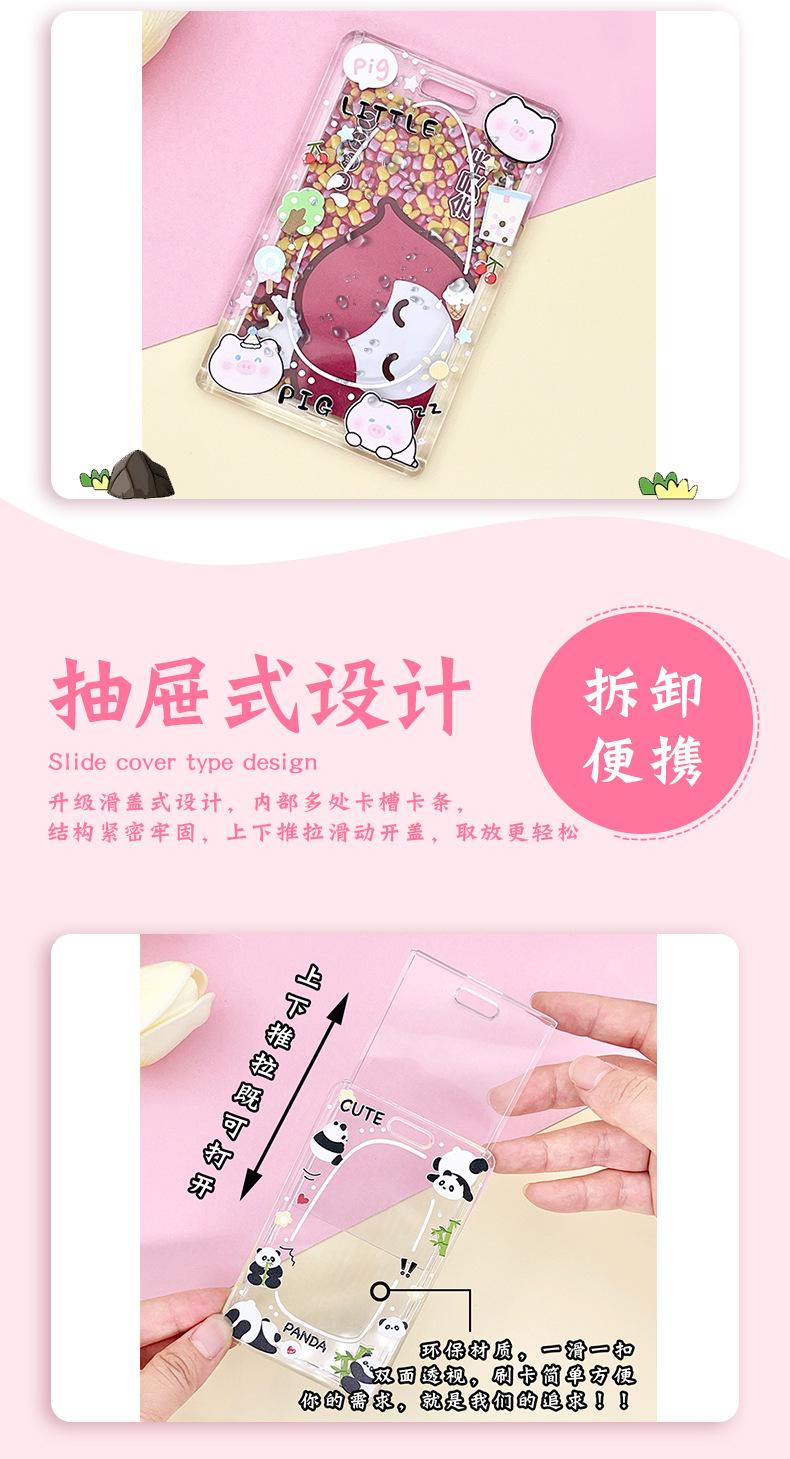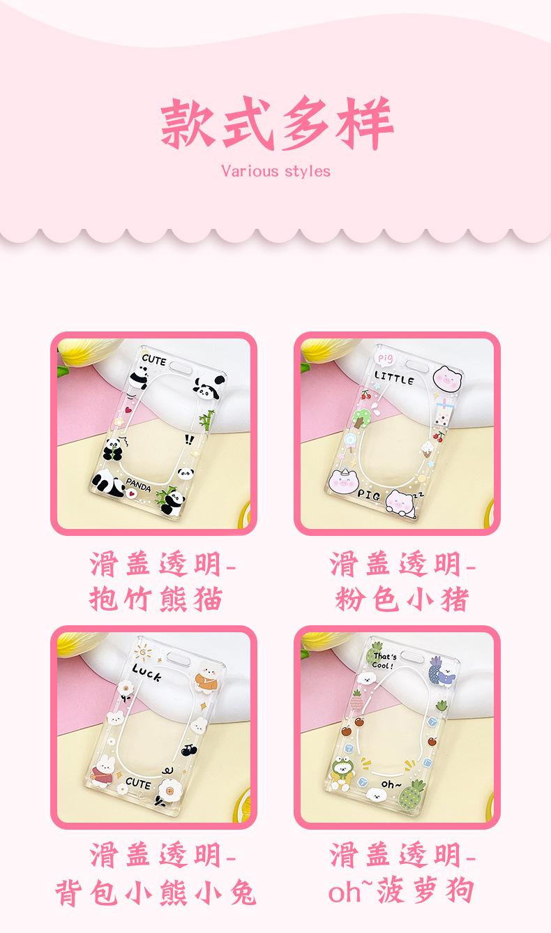 Transparent sliding cover-pink pig + pink bell lobster clasp, Transparent sliding cover - backpack bear and bu...