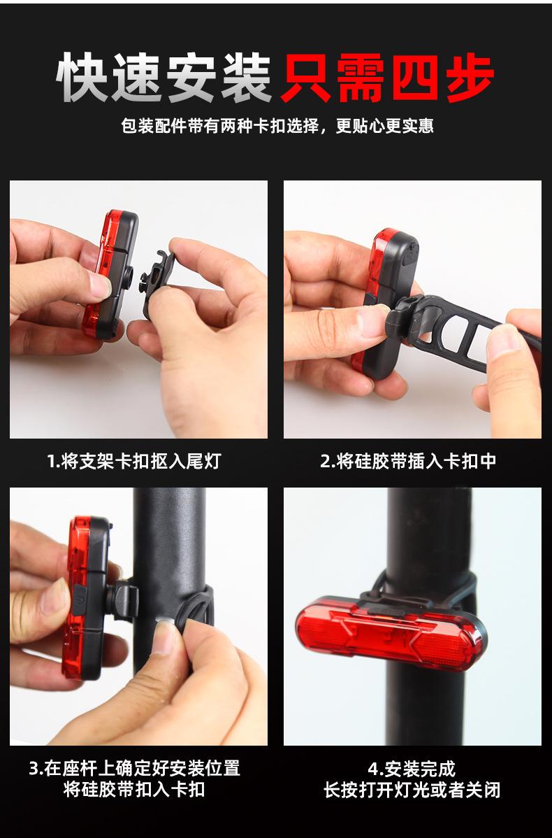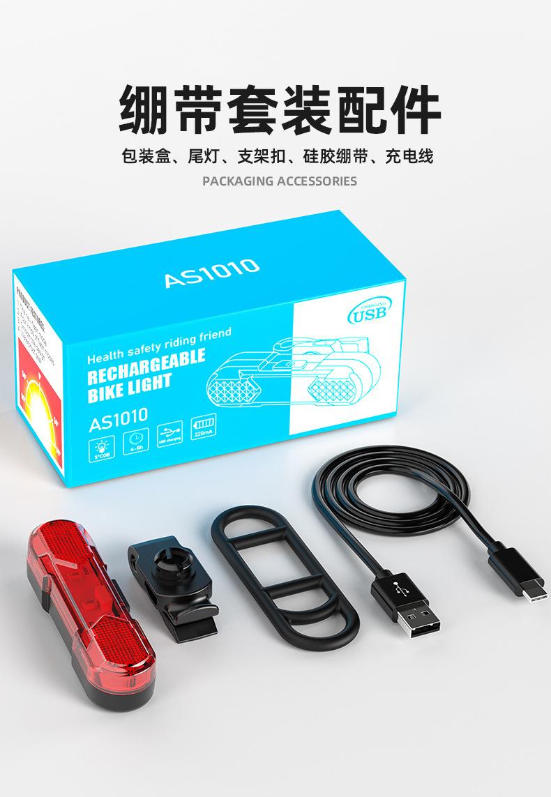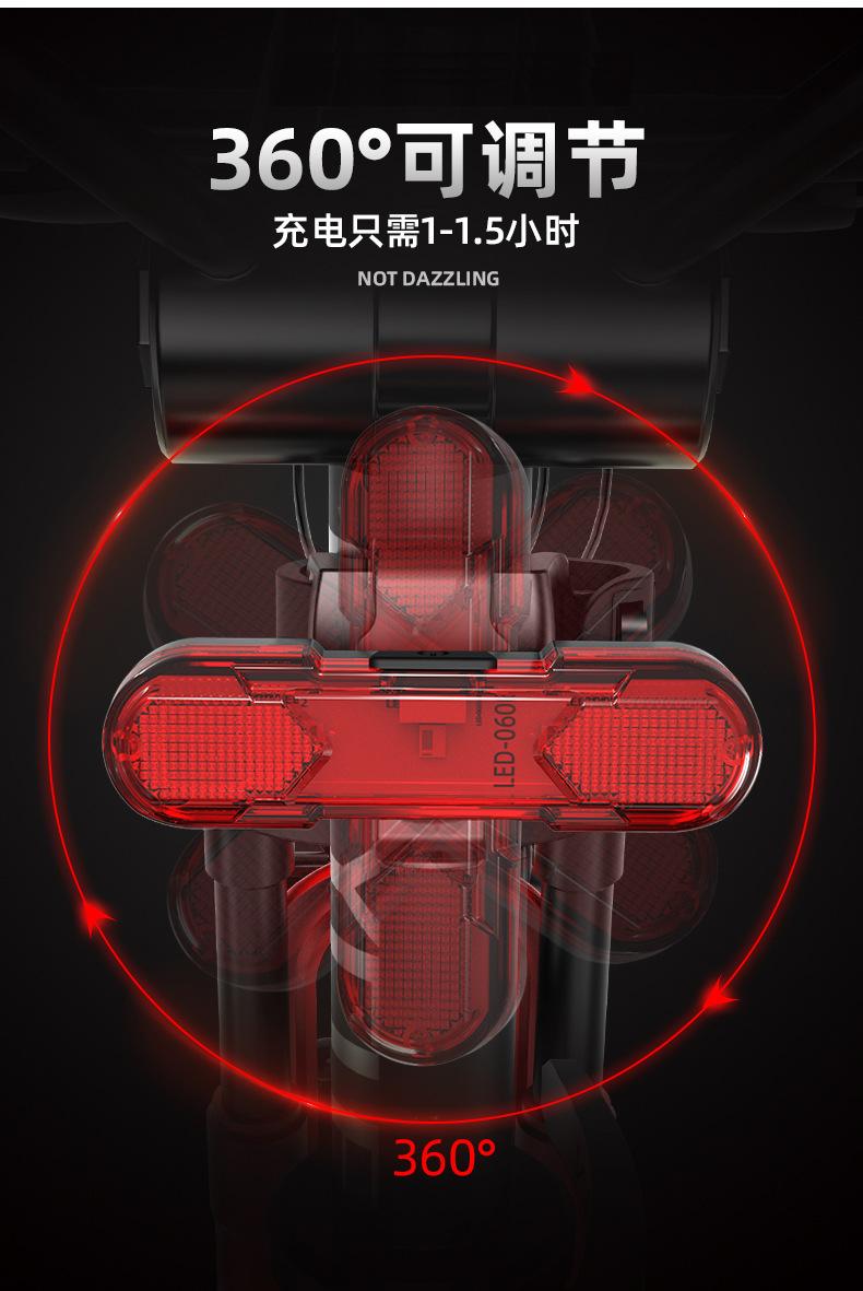 Luz traseira de bicicleta recarregável USB giratória de 360 graus transfronteiriça, luz de advertência para mountain bike, equipamento de pilotagem noturna